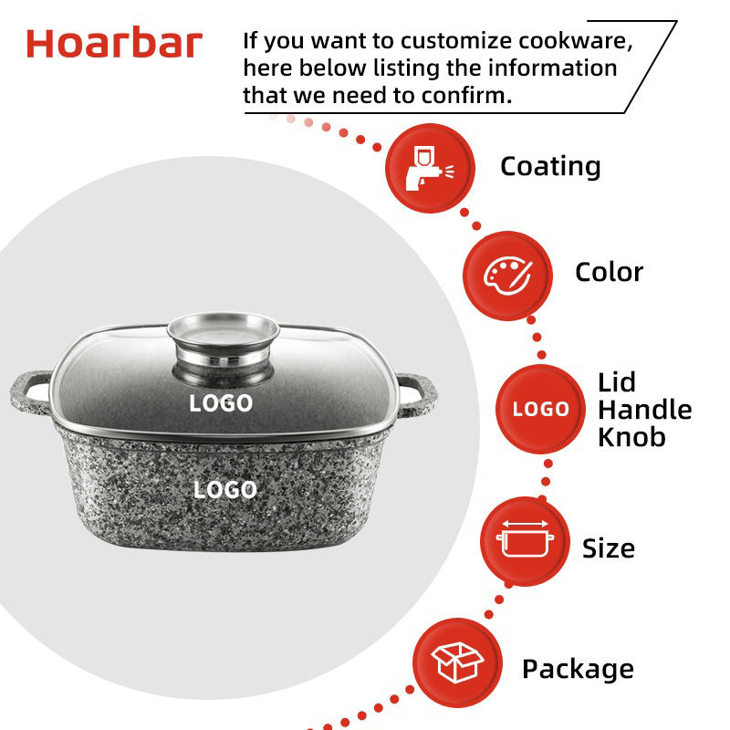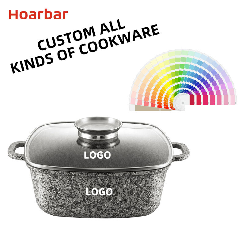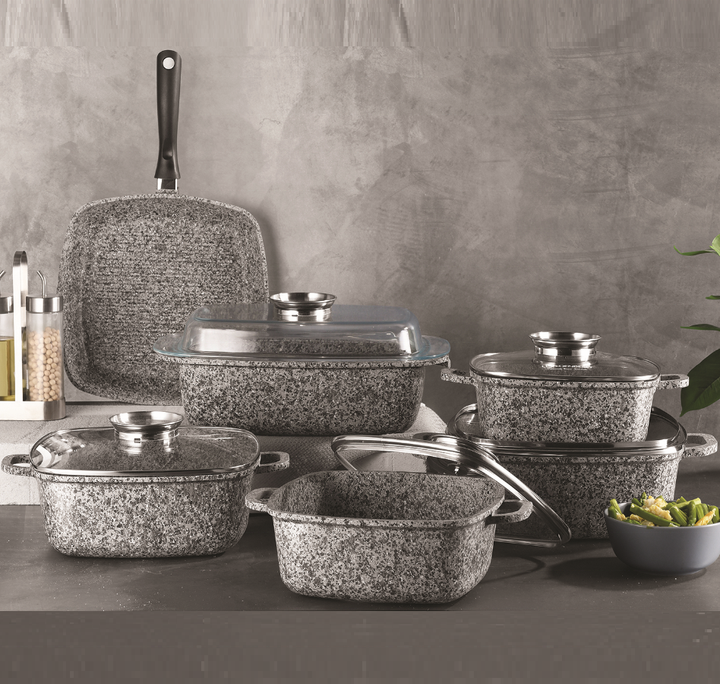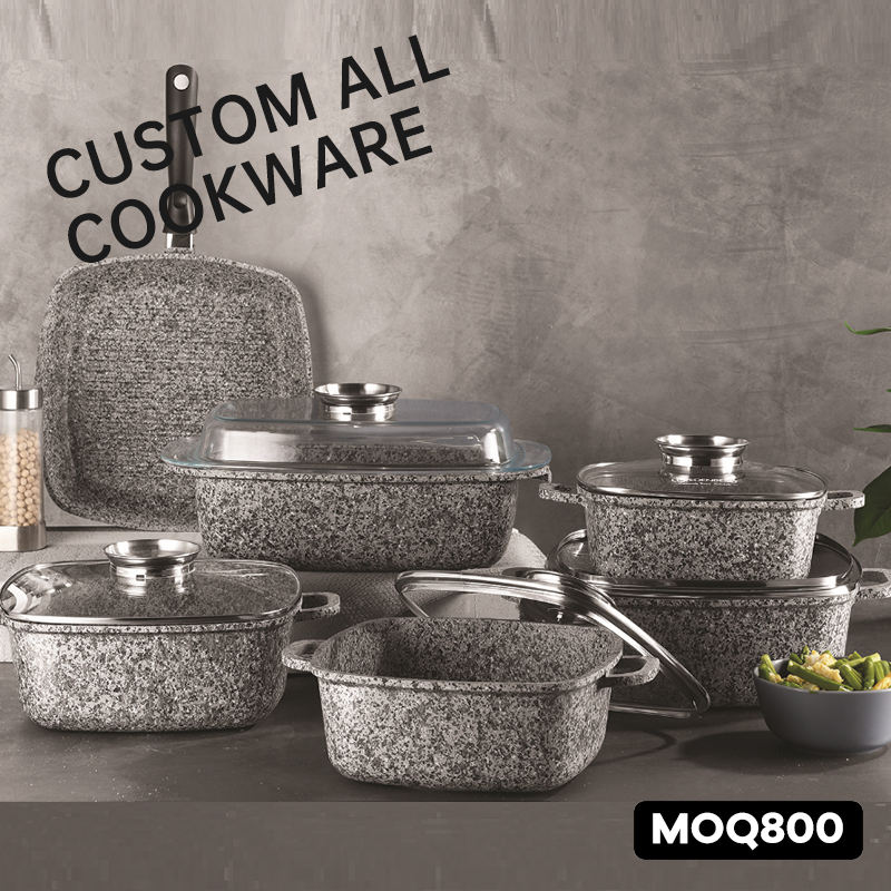 Classic Die Cast Aluminum Granite Marble Stone Coated 6-Piece Kitchen Cookware Set with Glass Lid and Induction Bottom Pots Pans