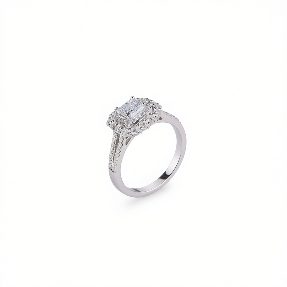 Anello di Fidanzamento Classico con Diamante Taglio Smeraldo Colore D per Donne in Oro Bianco con Diamanti Naturali Certificati F342