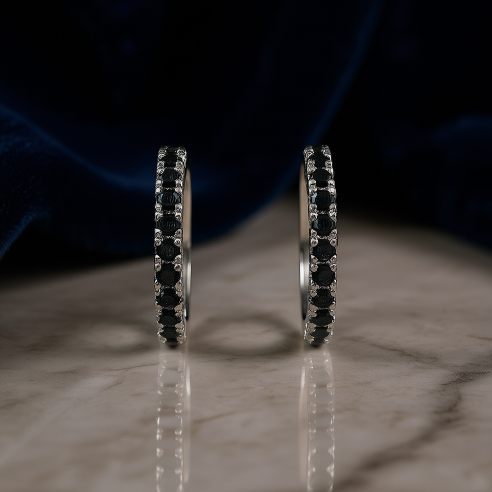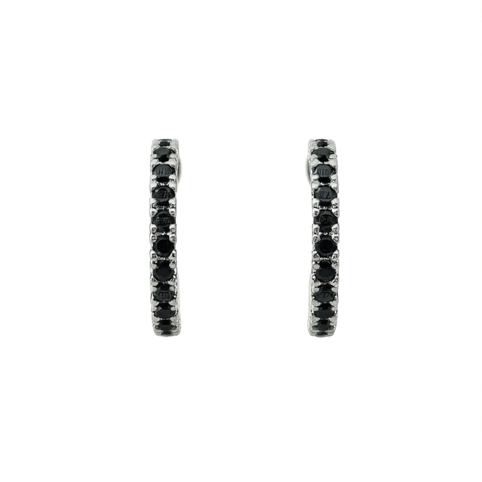 Classic Fancy Black Diamond Hoop Earrings for Women Natural Round Brilliant Cut Copper Setting Model E1827