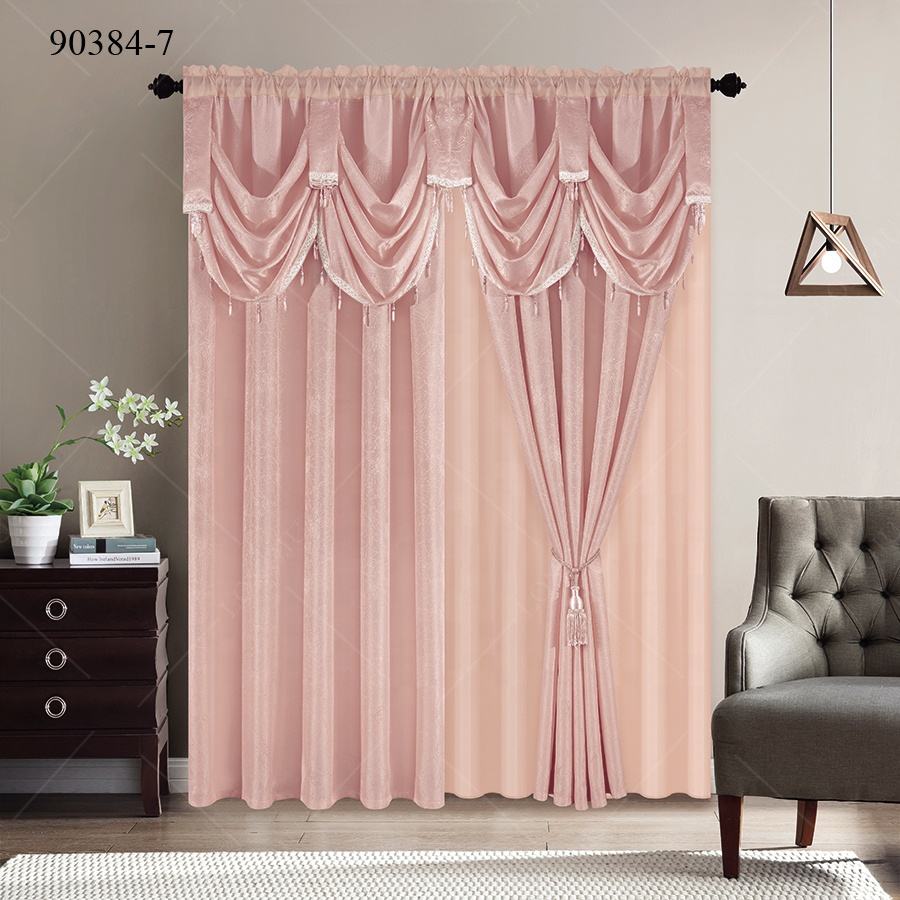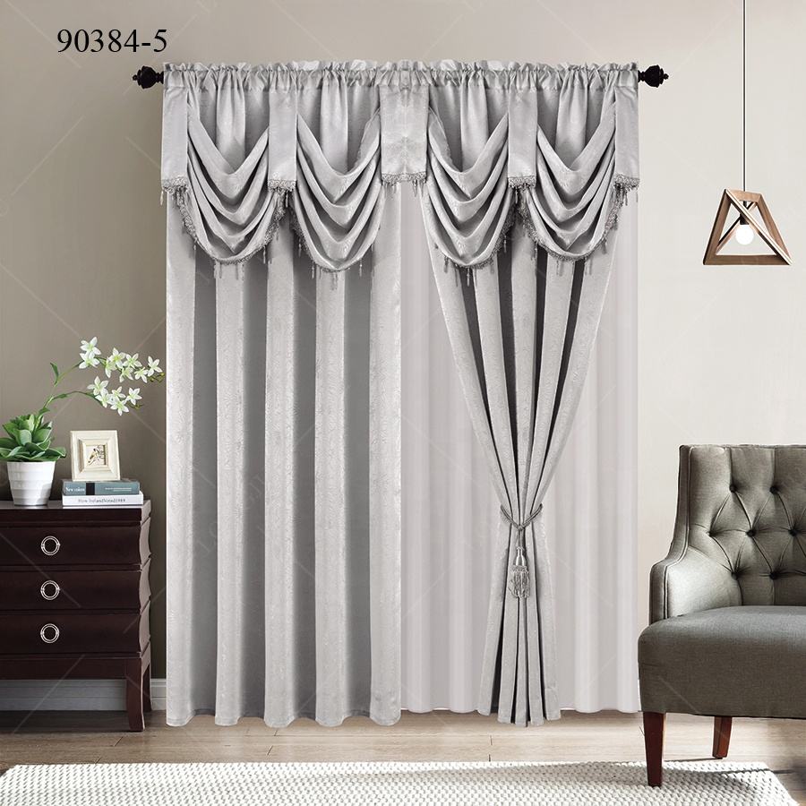 Classic Floral Jacquard Curtains with Valance Rod-Pocket Double-Layer Living Room Curtains Includes Tassel Pendants