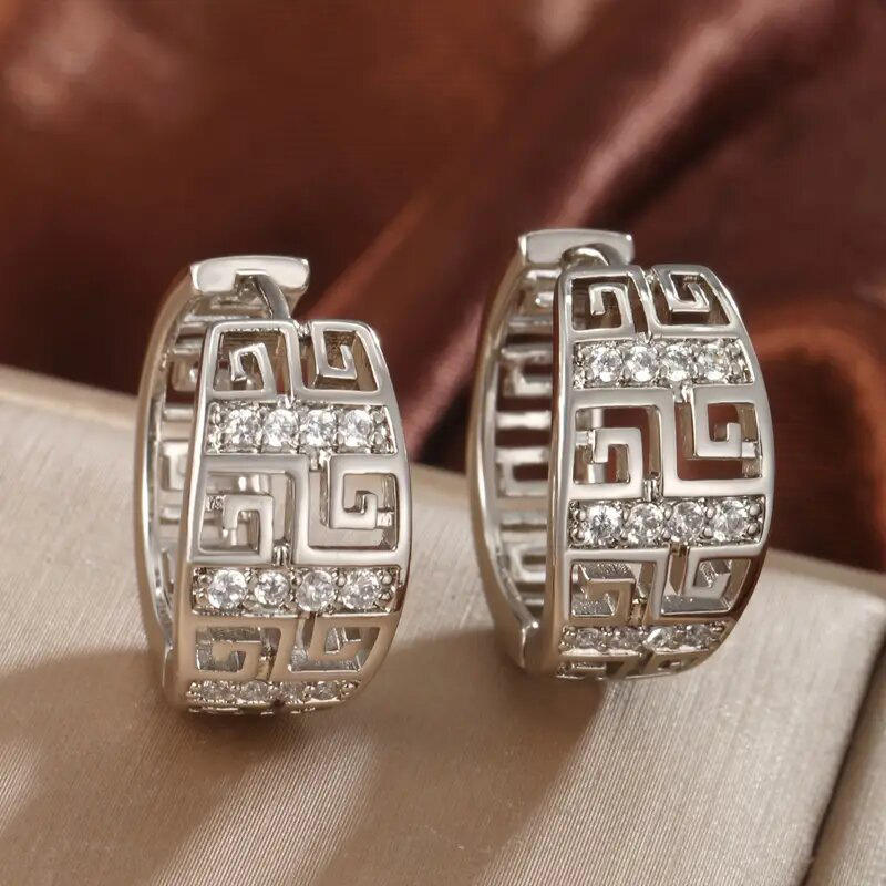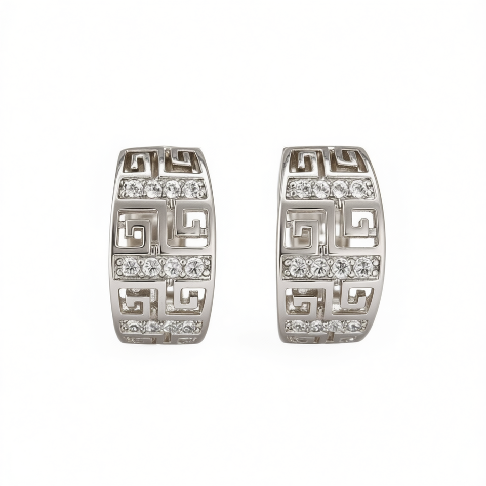 Classic Geometric Huggie Earrings 925 Silver Crystal Rhinestone Channel Setting Women's Everyday Wear