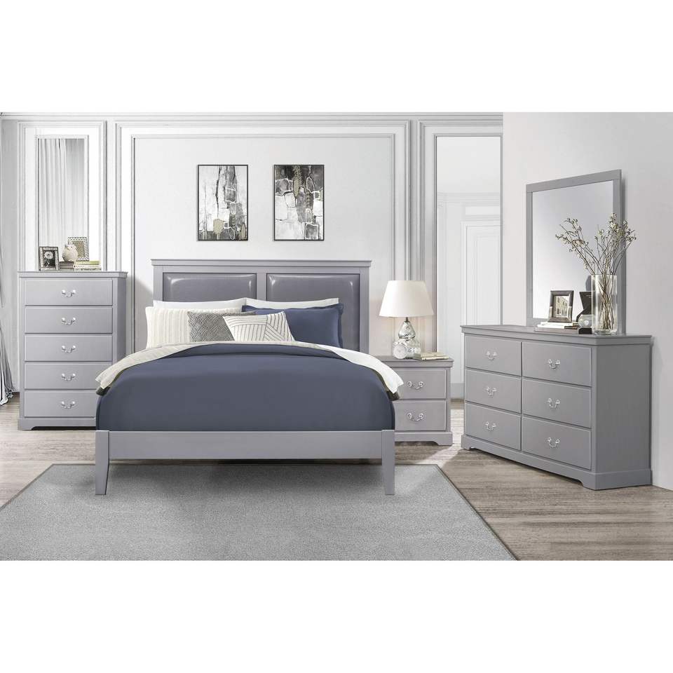Letto Classico Grigio King Size con Pannello, 1 Pezzo, Imbottito, in Legno, con Testiera, per Camera da Letto