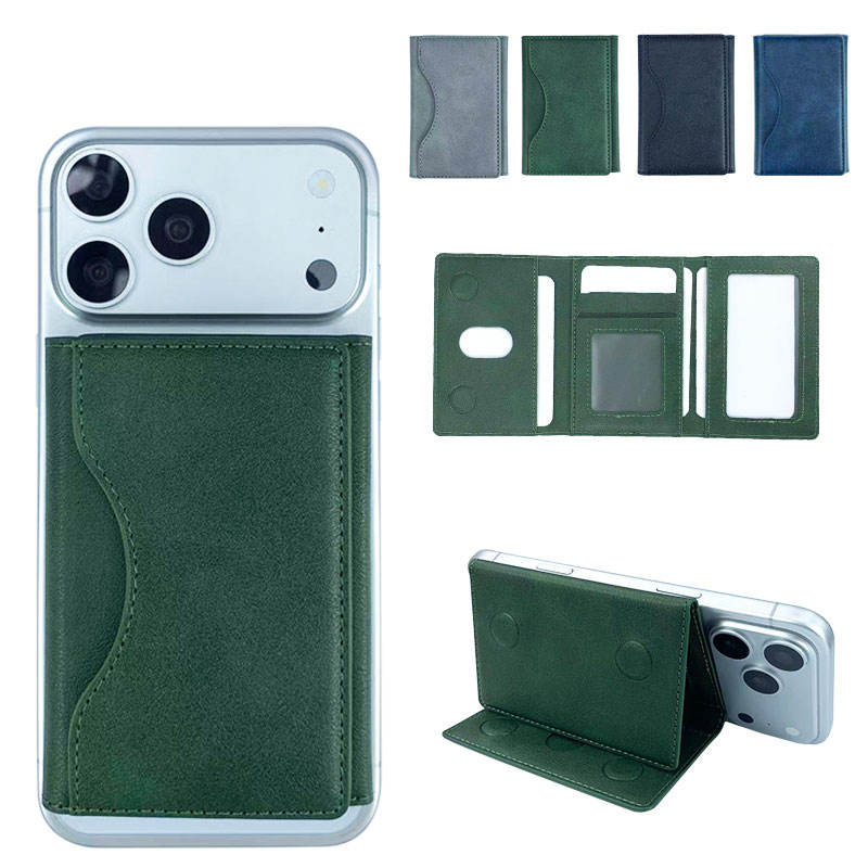 Classico Portacarte Magnetico in Pelle PU Verde per iPhone, Stile Senza Tempo, Funzione Moderna, Porta Foto/Documenti