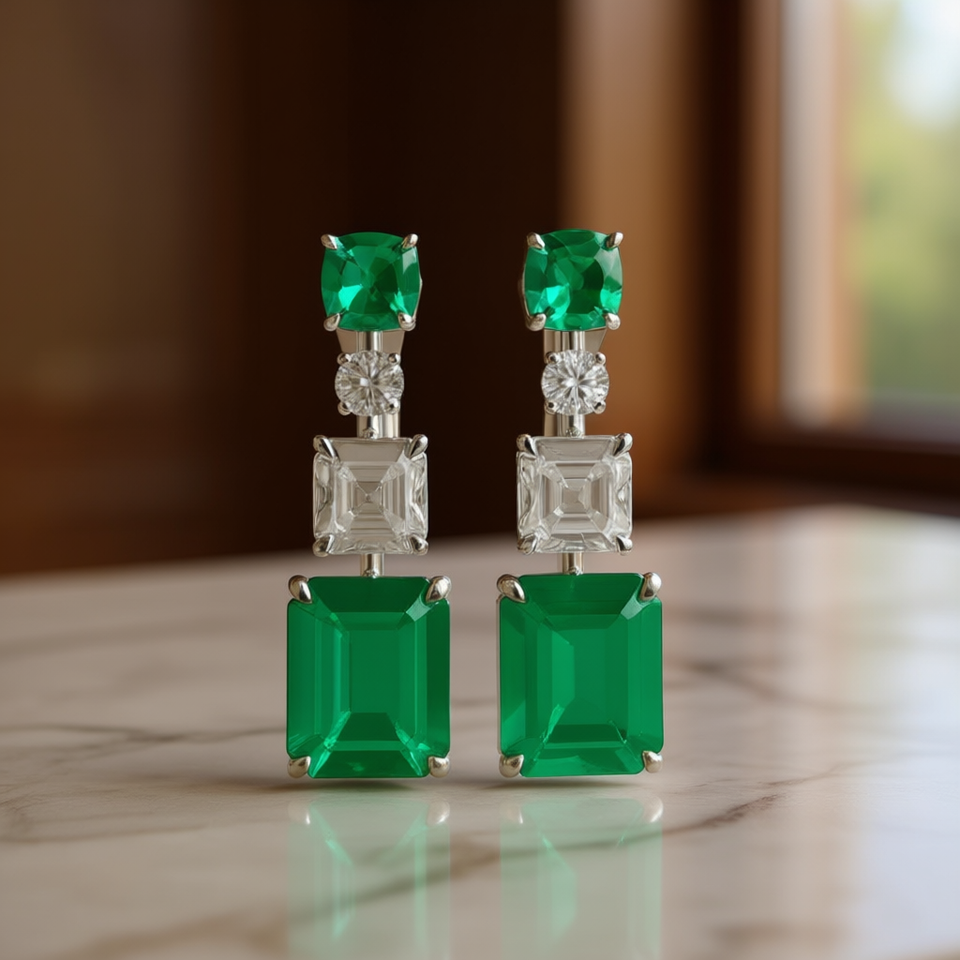 Orecchini Pendenti Classici con Zircone Verde e Cristallo Taglio Smeraldo, Montatura a Griffe con Strass, Gioielli alla Moda da Donna per Feste