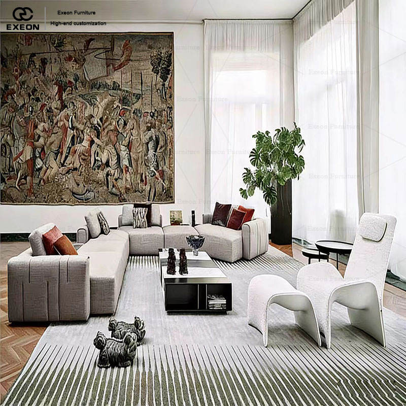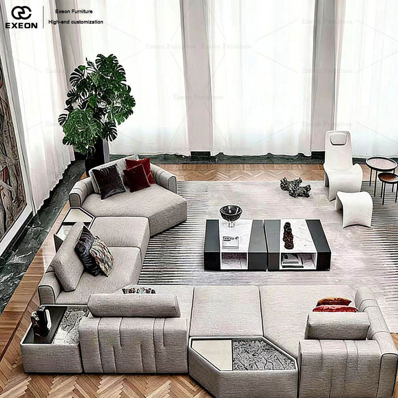 Divano Modulare in Pelle dal Design Minimalista Italiano Classico per Soggiorno, Villa, Uso Domestico, Divano Creativo e Lussuoso per Più Persone