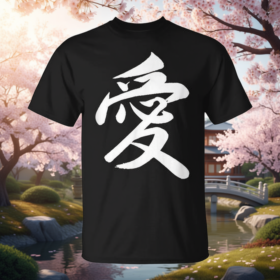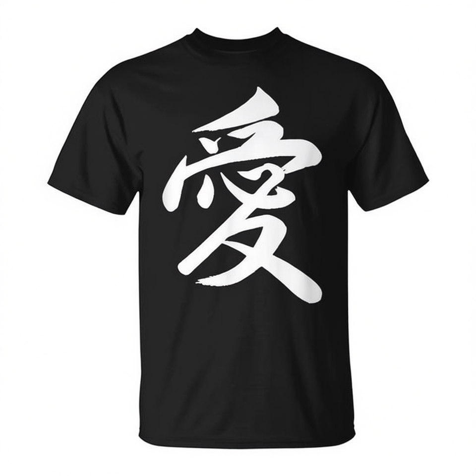 T-Shirt Classica con Calligrafia Cinese, Nera, Unisex, Taglie Adulto M L XL XXL, Collo Tondo, Manica Corta, Stampa Serigrafica