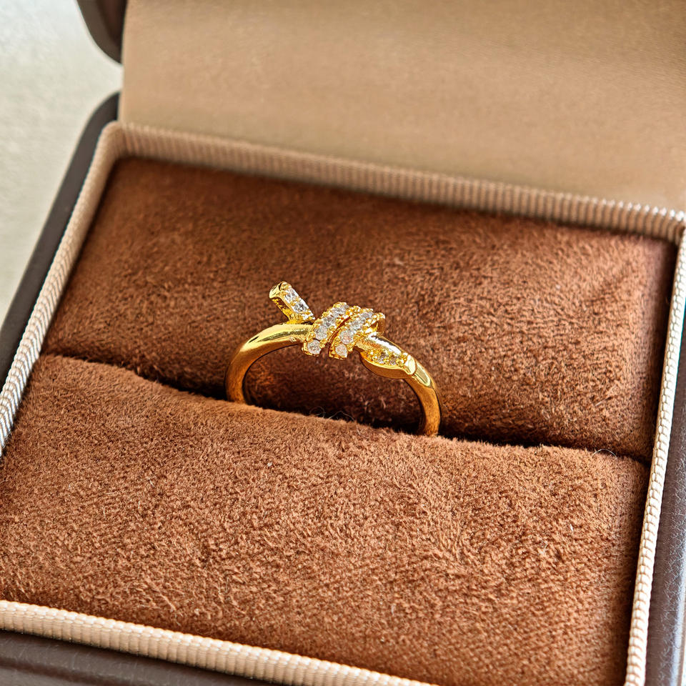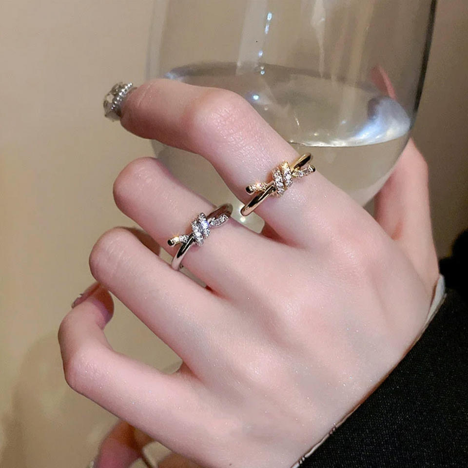 Classic Luxury 18K Gold Plated Diamond Crossed Knotted Ring Twisted Micro Zircon Rings for Party Engagement