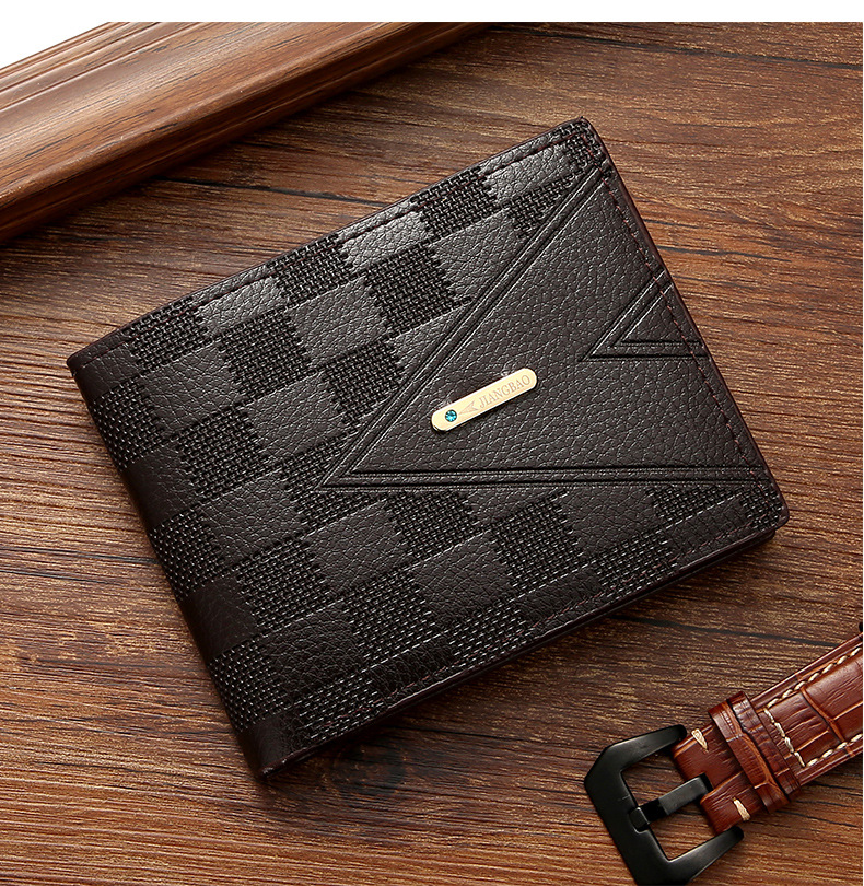 Classic Men's Designer PU Leather Plaid Bifold Wallets Open Closure Polyester Lining Money Credit Card Coin Purse Bag Holder