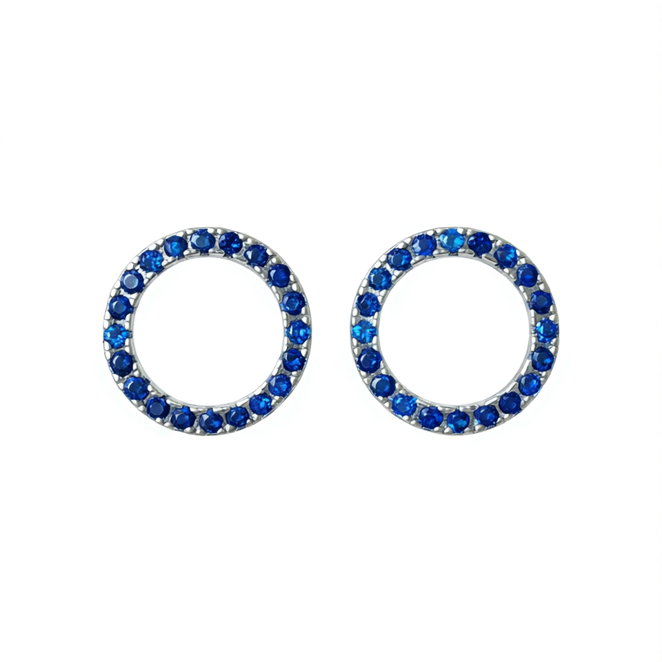 Classic Natural Round Brilliant Cut Diamond Earrings with Sapphire Blue Side Stones Copper for Women's Fine Jewelry E1825