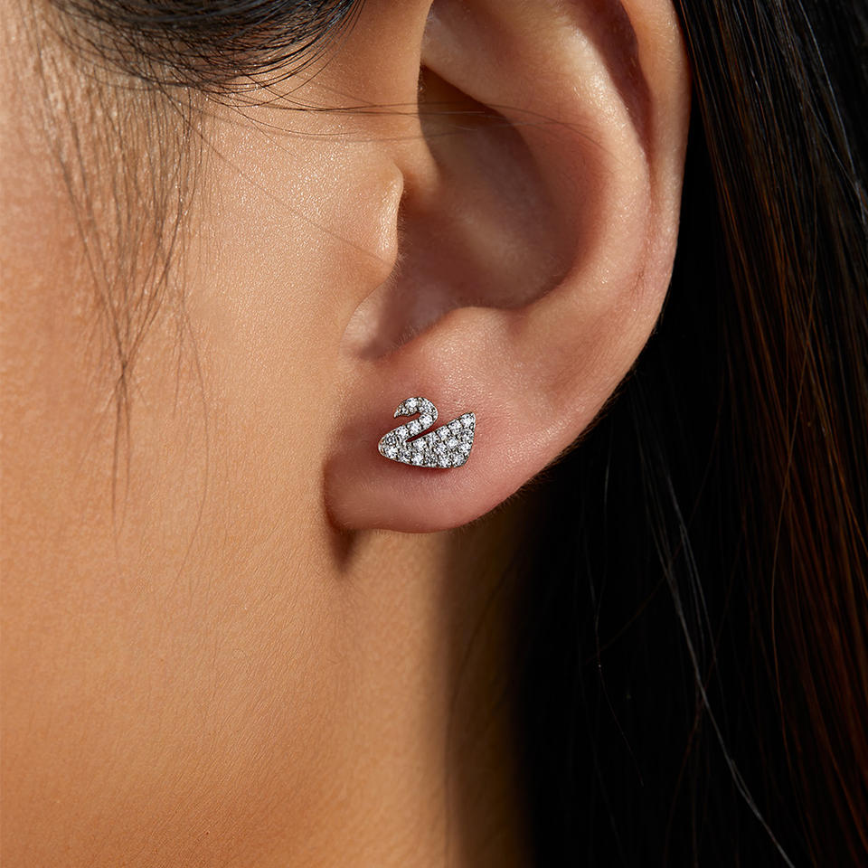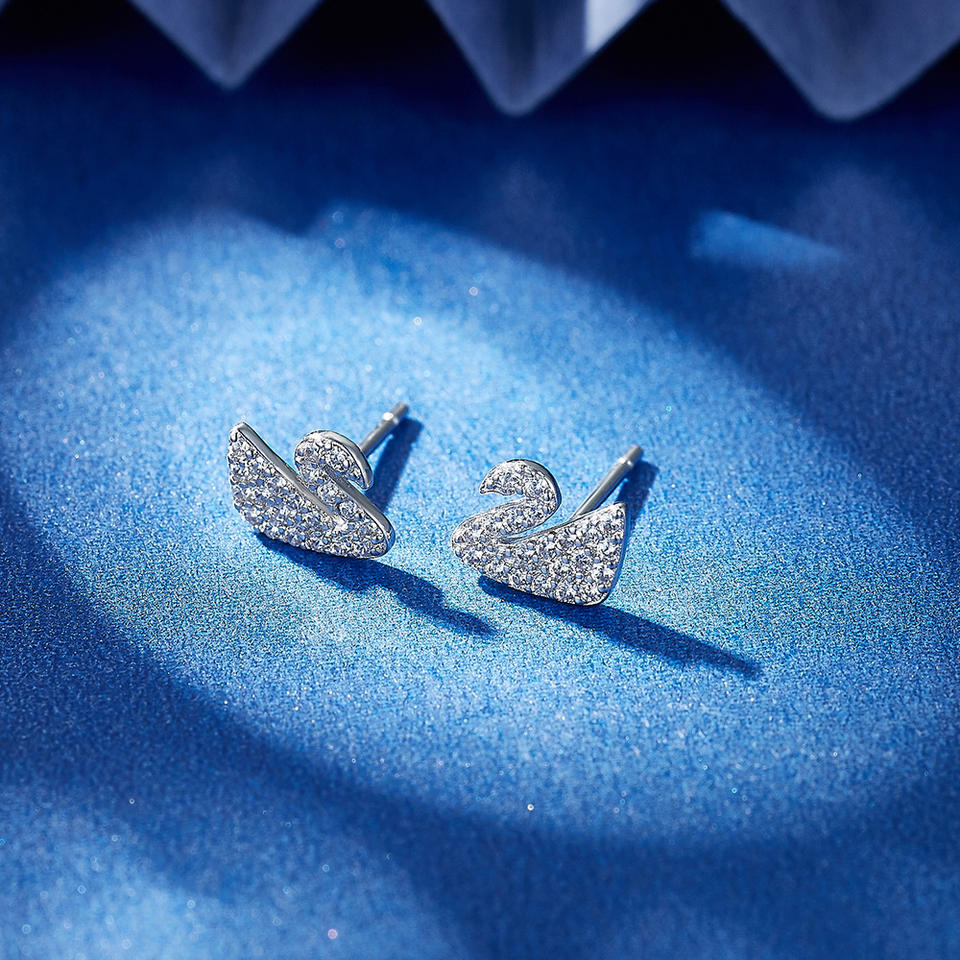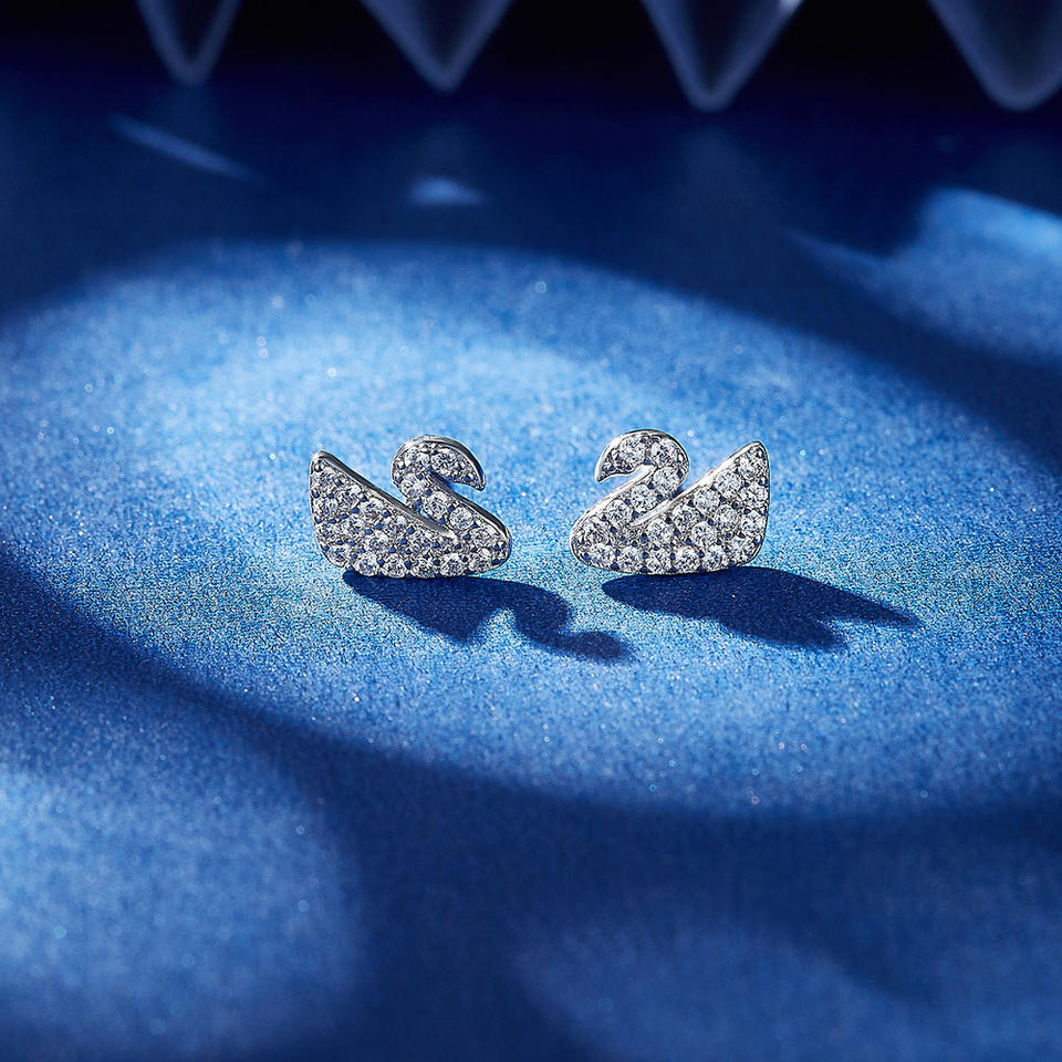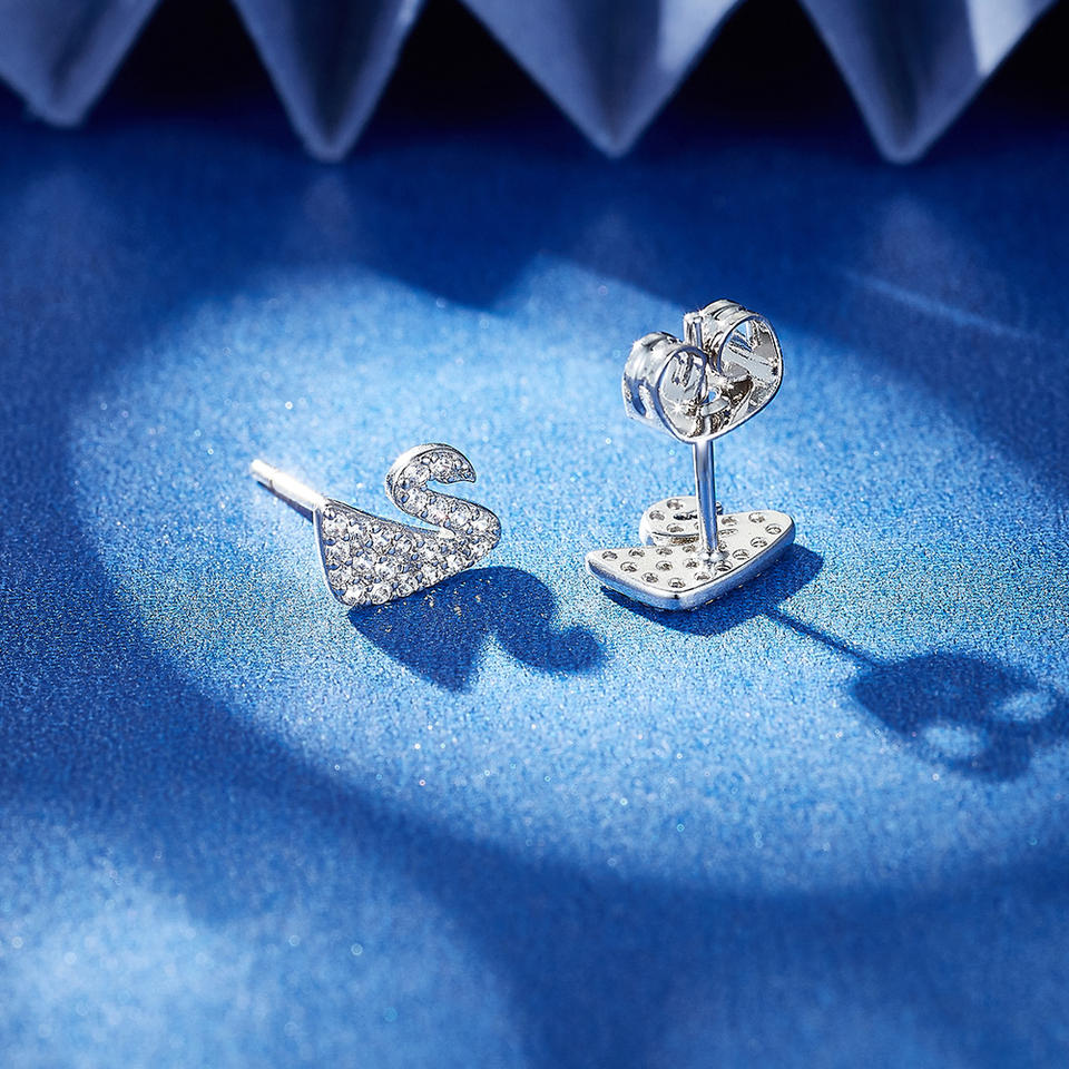 Orecchini classici a forma di cigno nobile oro bianco orecchini a bottone gioielli per signore ragazze