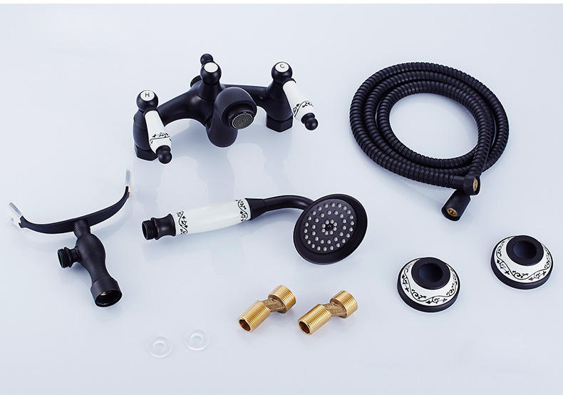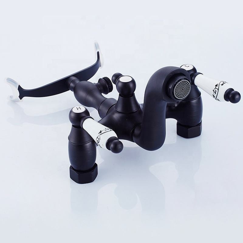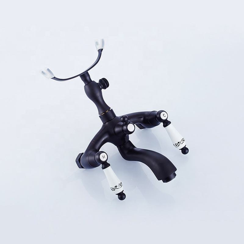 Classic Olio di Bronzo Lucidato Vasca da bagno Rubinetto Set Montaggio A Parete In Ottone Nero Miscelatore Doccia Rubinetto Del bagno Rubinetto con Manico In Porcellana SF1417