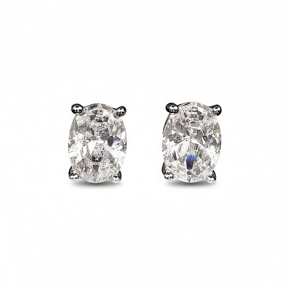Orecchini a Perno Classici con Diamante Taglio Ovale per Donne, Placcati in Oro, Argento 925, Montatura a Griffe Gialle, 1.0 Ct