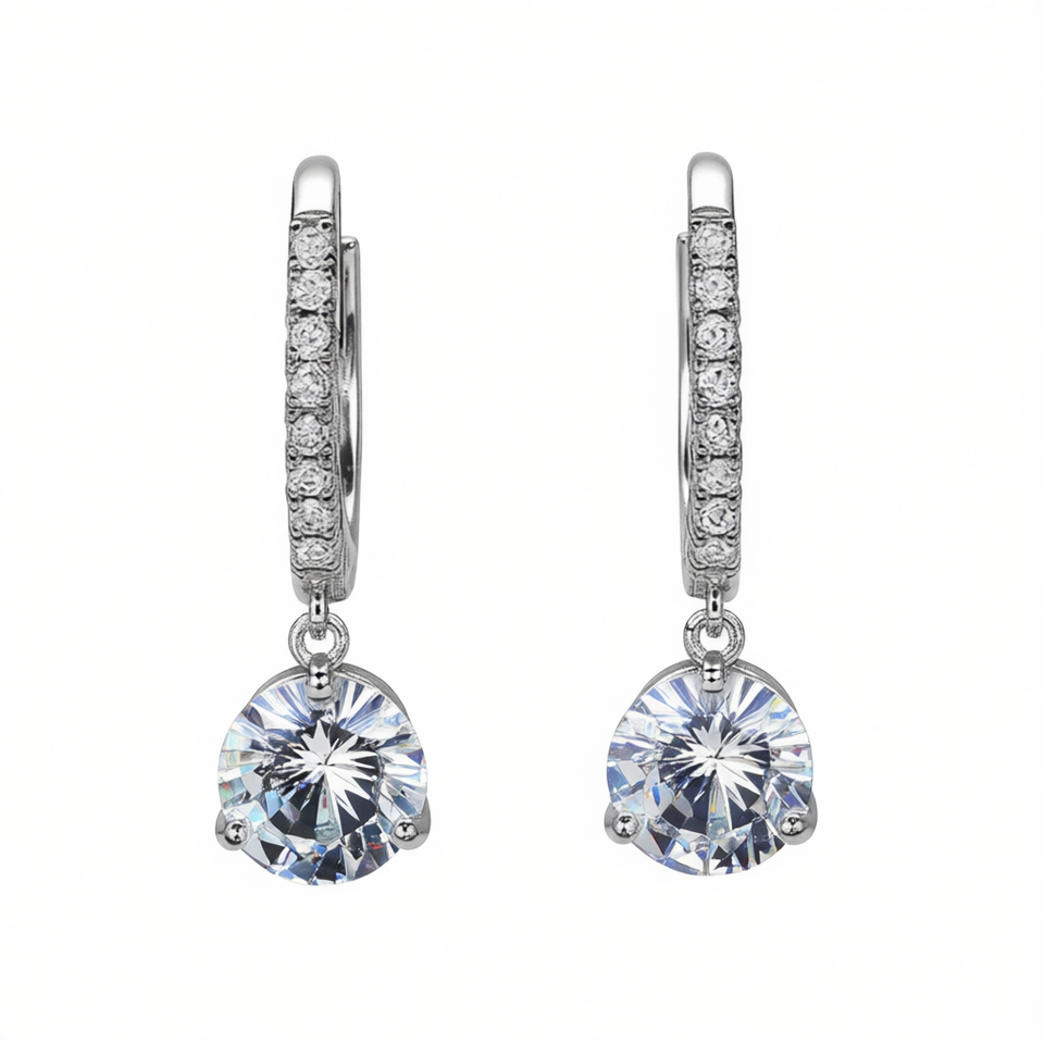 Orecchini Pendenti Classici Placcati in Rodio con Zircone Rotondo per Donna, Gioielli da Festa, Orecchini alla Moda in Lega
