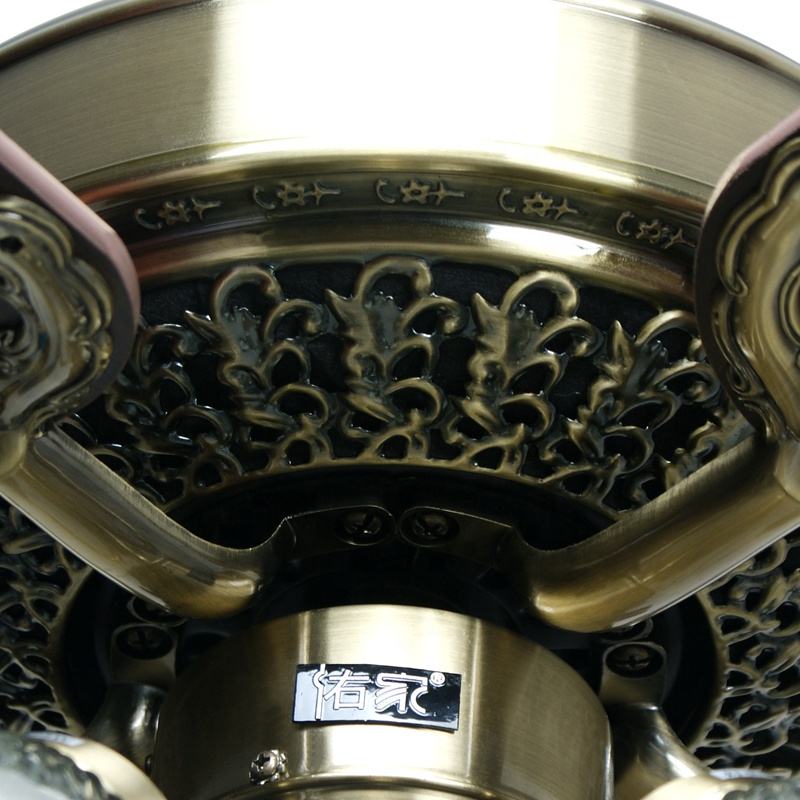 Ventilatore da Soffitto Classico Rustico da 52 Pollici in Ottone Anticato con Telecomando, 5 Lampadine, Lampadario Elettrico Decorativo Retrò per Uso Alberghiero