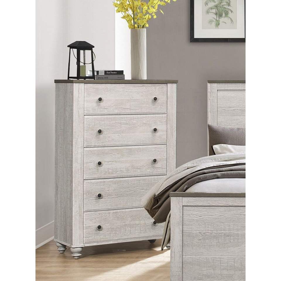 Classica cassettiera di transizione rustica 5 cassetti bicolore antico bianco e marrone mobili camera da letto
