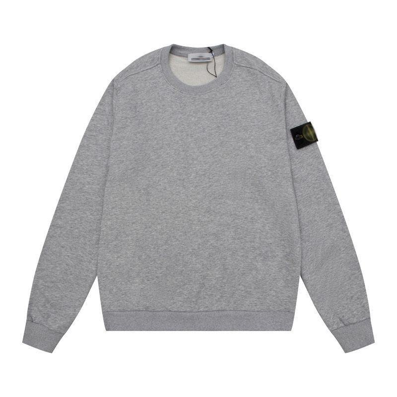 Felpa Classica STON in Cotone a Maniche Lunghe con Collo Tondo e Badge, Colore Unico, Unisex, Versione Corretta per Coppie, Autunnale