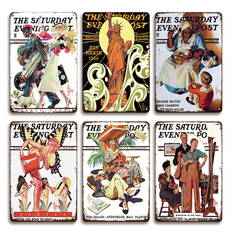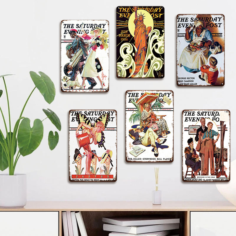 Targa in Metallo Classica del Saturday Evening Post Copertine di Riviste Americane Vintage Decorazione da Parete da Collezione