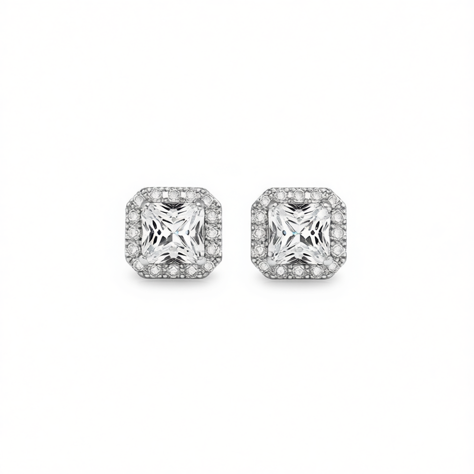 Orecchini a Perno Quadrati Classici con Zircone Taglio Principessa, Montatura a Castone, in Lega Metallica, Gioielli da Sposa per Donna, Modello E800