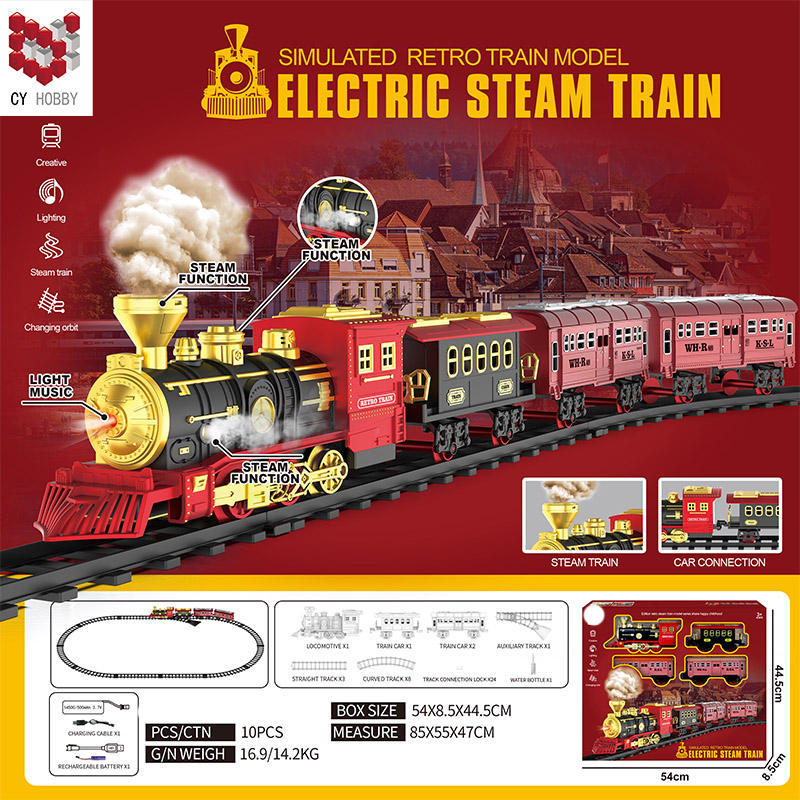 Ferrovia per bambini con guida a vapore classica per auto giocattolo (con 3 Spray) per regalo per bambini