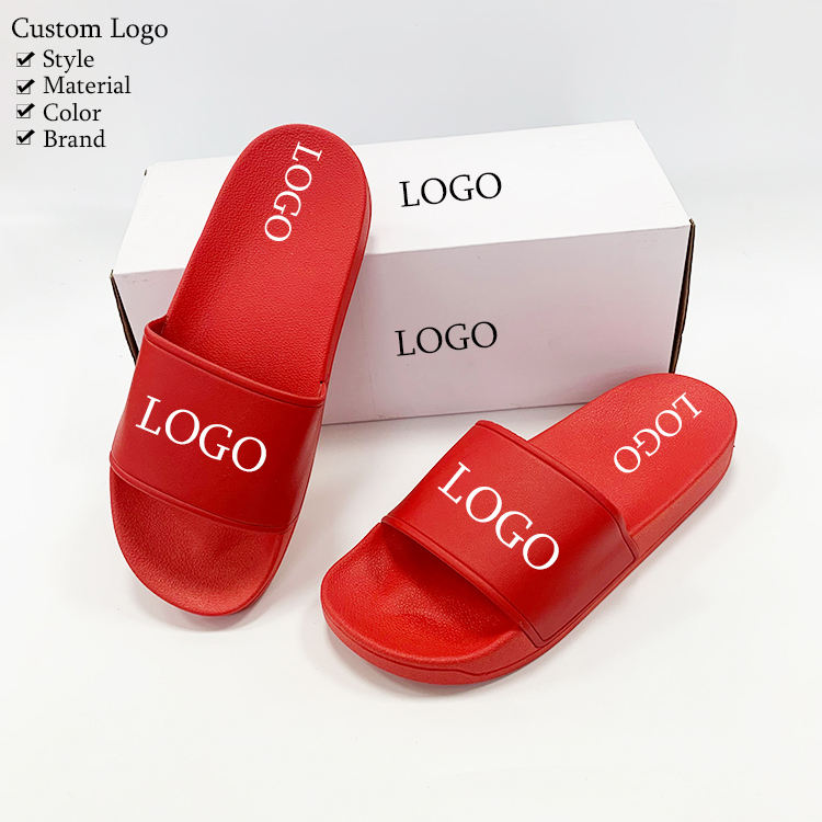 Ciabatte Slider Classiche in PVC Personalizzabili con LOGO Rosso per Uomo, Sandali Personalizzati con Logo Personalizzato