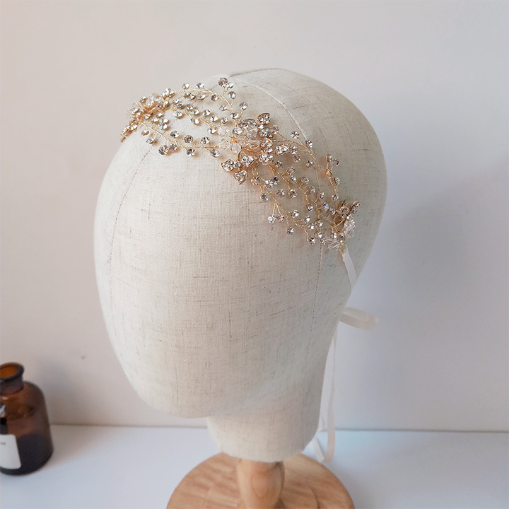 Fascino Classico Scintillante per la Sposa: Ghirlanda per Capelli Amelie con Strass Oro/Argento, Eleganza Artigianale Economica