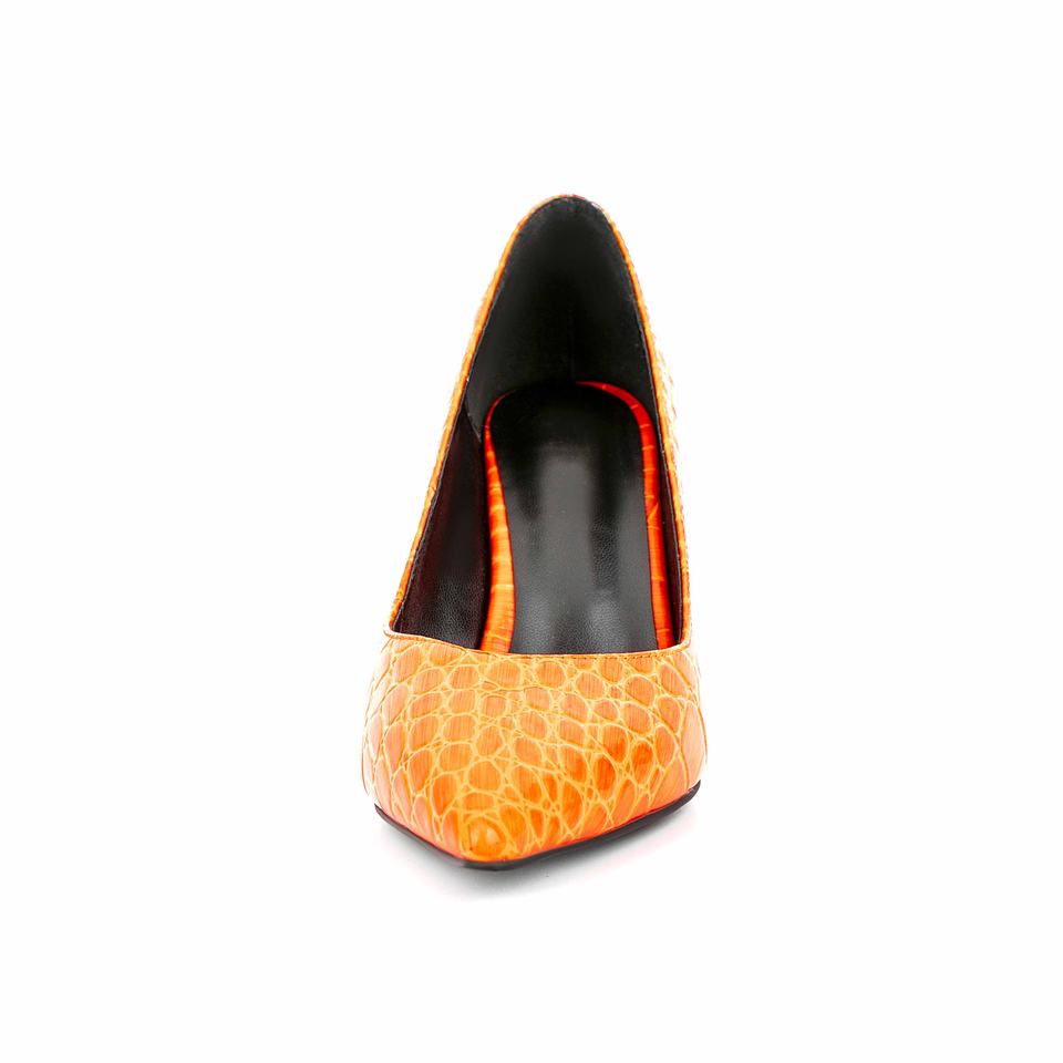 Stili classici moda donna scarpe singole di grandi dimensioni scarpe con tacco alto da donna a punta arancione scarpe da festa da sposa