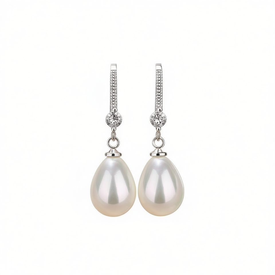 Classic Teardrop Cultured Pearl Drop Earrings White Gold Plated 925 Silver AAA Grade Wedding Jewelry For Women