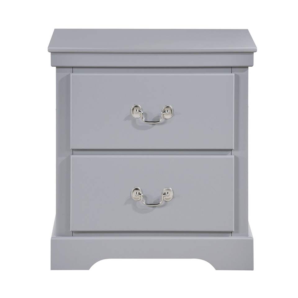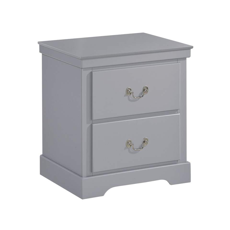 Comodino Classico Tradizionale a 2 Cassetti, 1 Pezzo, Finitura Grigia, Mobiletto in Legno per Camera da Letto