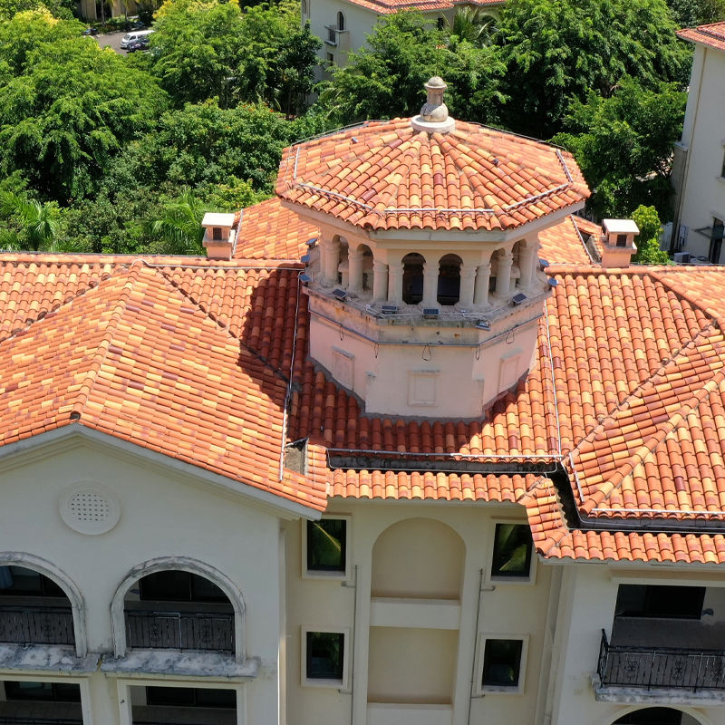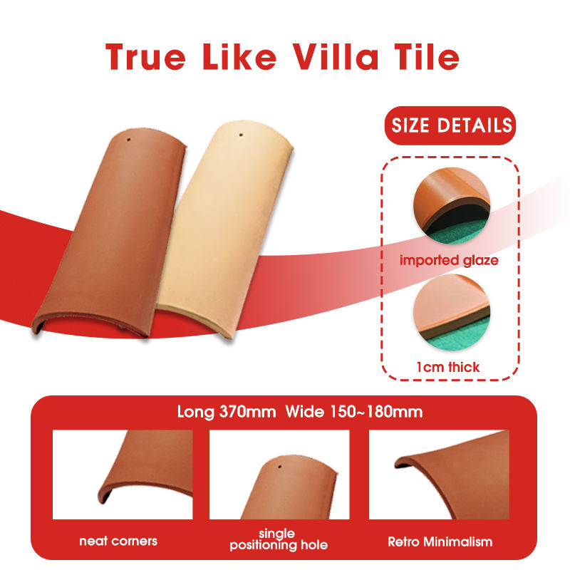 Tegola in Ceramica Classica in Stile Cinese Tradizionale, Profilo a Barile, Smaltata Opaca, 370mm, Marrone, Duratura