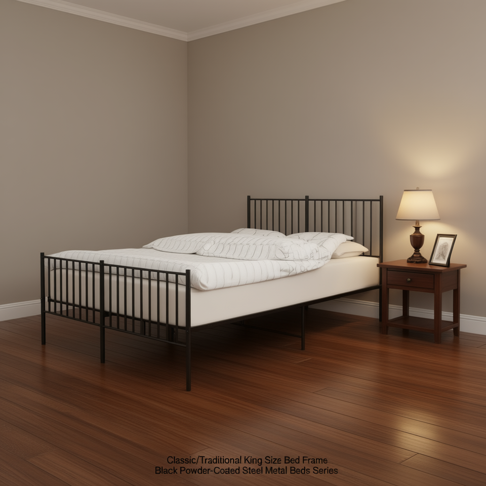 Classico Letto Matrimoniale in Metallo con Struttura in Acciaio Verniciato a Polvere Nera, Arredamento per Camera da Letto
