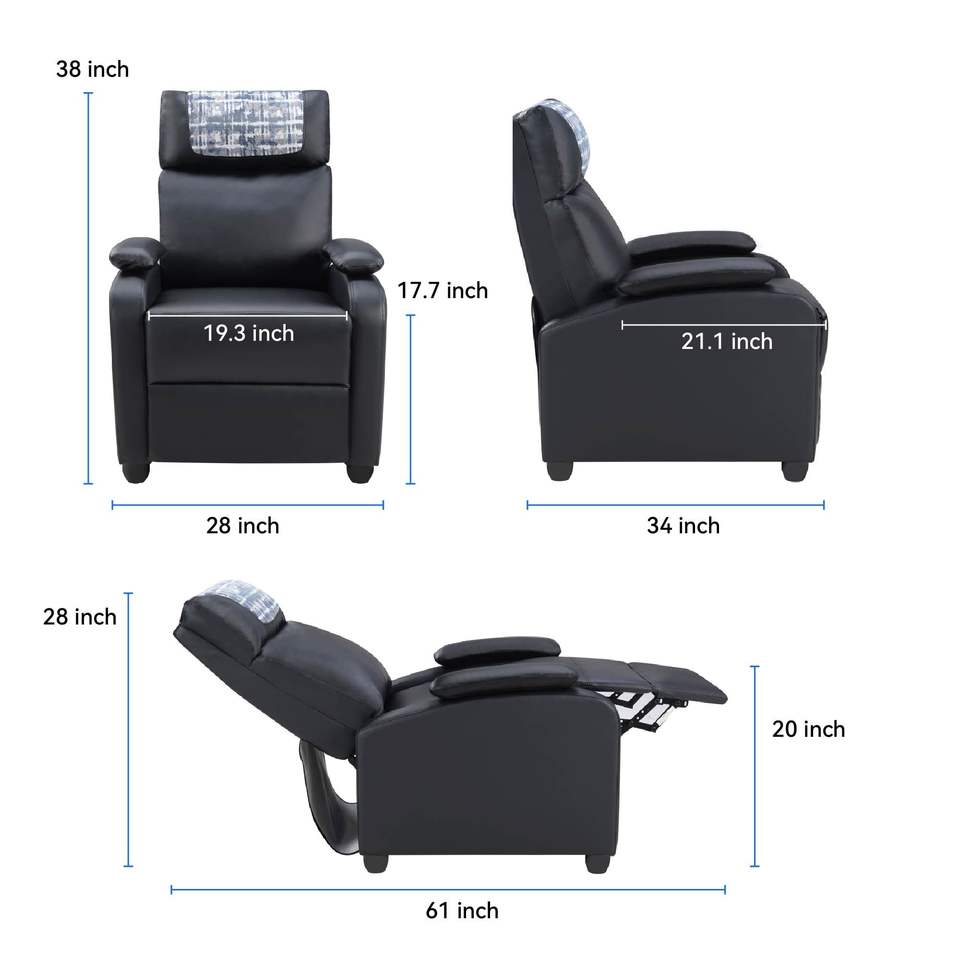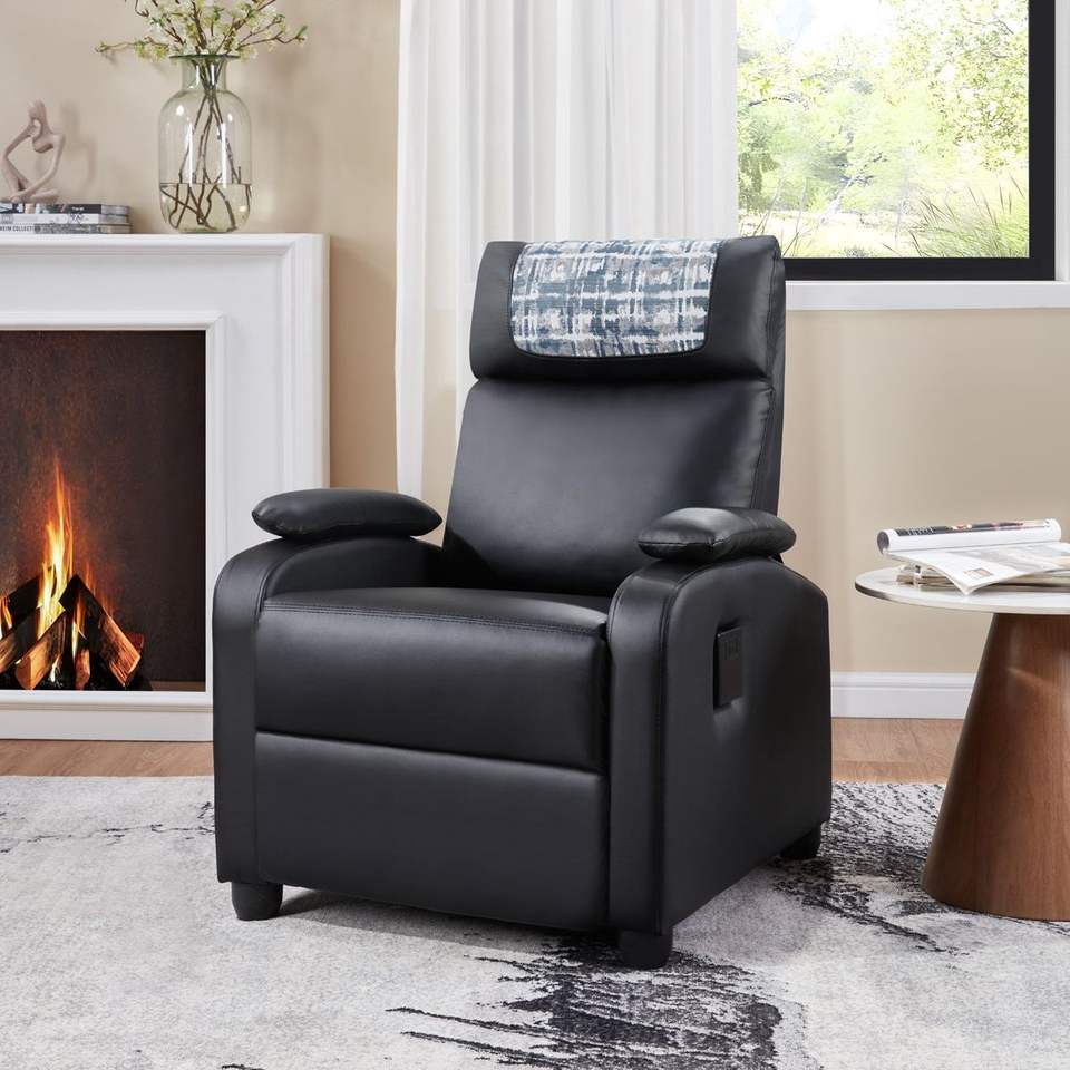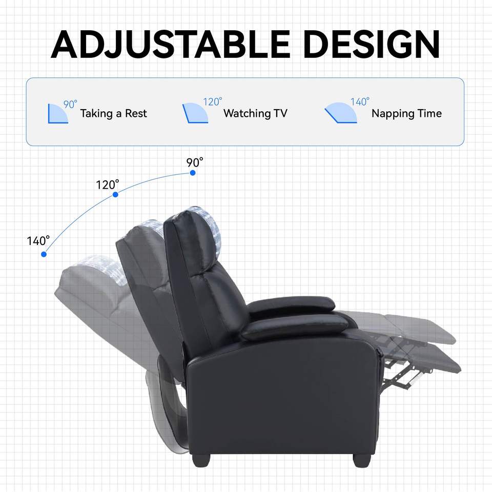 Poltrona Reclinabile Manuale Classica Tradizionale, Comoda Poltrona Singola Nera per Soggiorno con Braccioli e Schienale