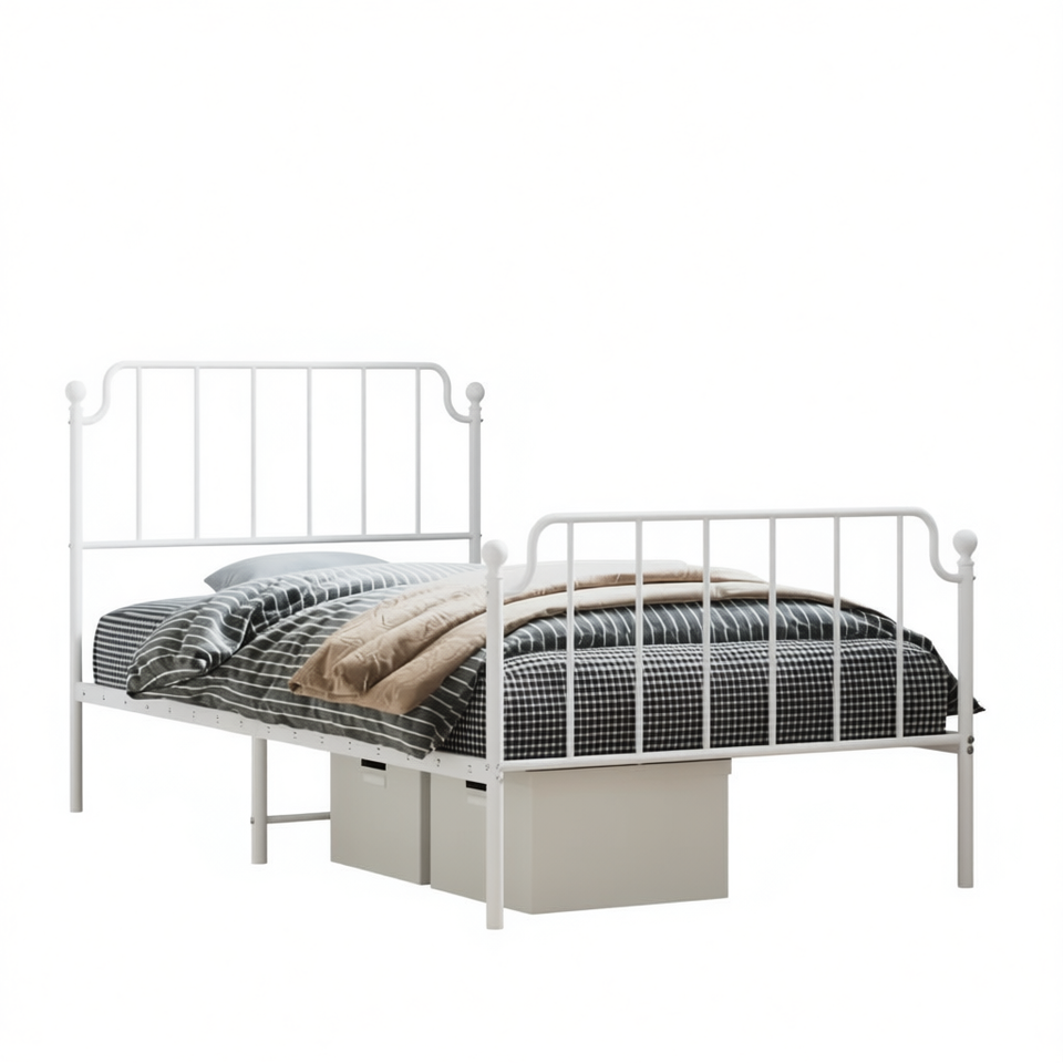 Struttura Letto Singolo Classica in Acciaio Bianco, Letto in Metallo Resistente, Arredamento Camera da Letto
