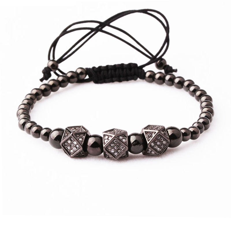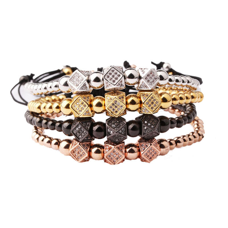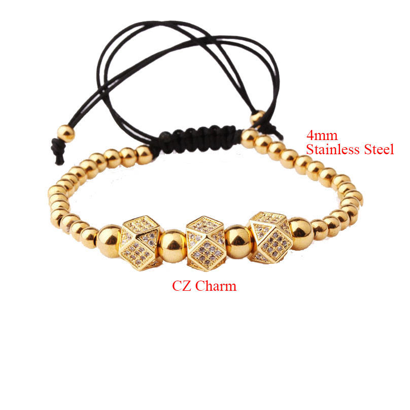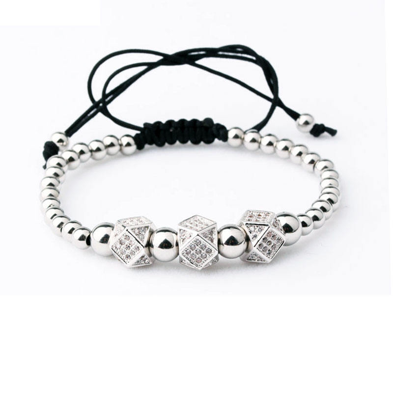 Classic Triple CZ Pave Charms perline in acciaio inossidabile bracciale Macrame uomo donna JBS9583