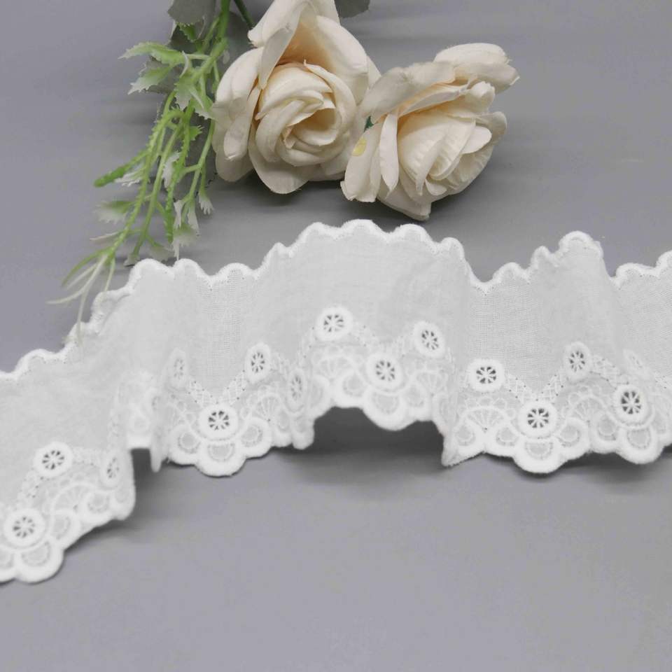 Classic White Cotton Eco-Friendly Eyelet Lace Trim 5.7cm Floral Broderie Anglaise for Dress Sewing