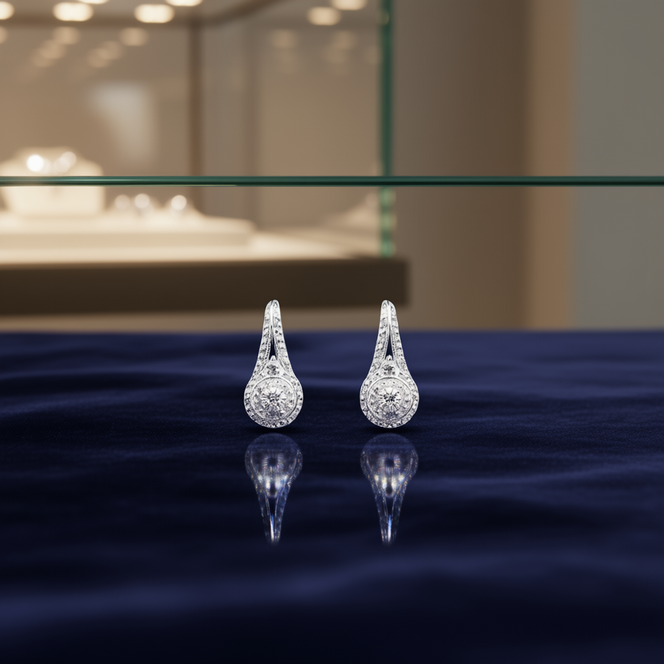 Orecchini Classici in Oro Bianco con Diamanti Naturali Taglio Brillante Certificati Colore D per Gioielli da Sposa Donna E1465