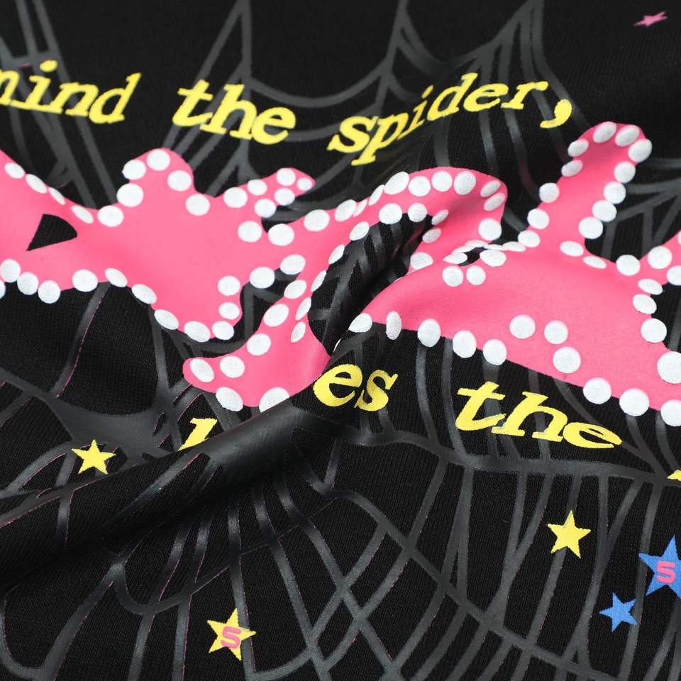 Felpa con Cappuccio Classica in Cotone con Stampa Autunnale Multicolore a Ragnatela Vestibilità Ampia