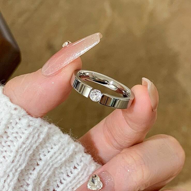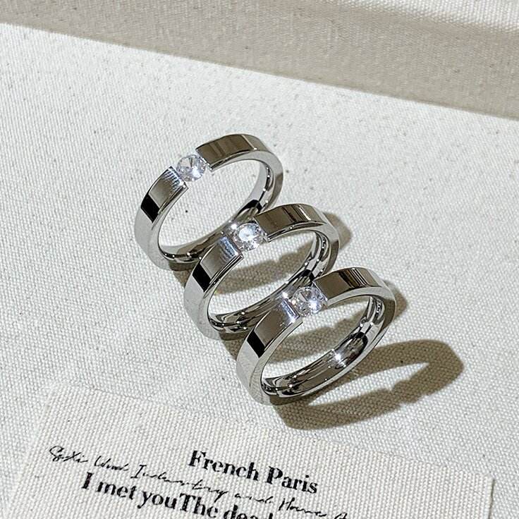 Anello Classico in Titanio 18K con Diamante Singolo, Anello in Acciaio Inossidabile Placcato Oro Rosa con Zircone per Donne e Ragazze