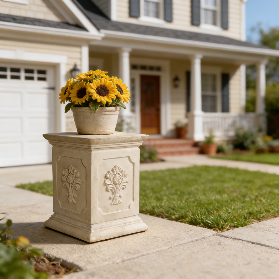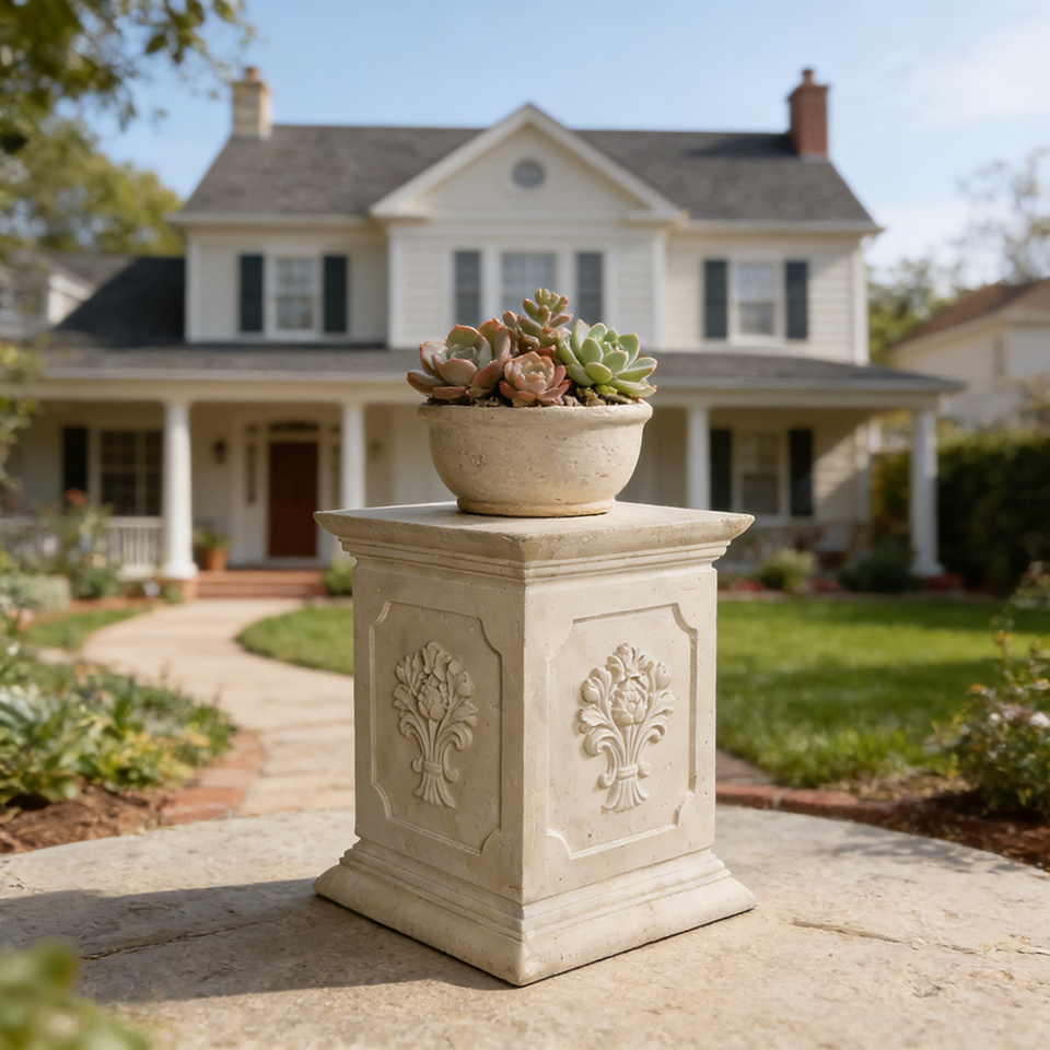 Classical European Resin Pedestal Stand, Antique Relief Flower Display Base for Sculpture & Vase, Luxury Indoor Art Decor Plinth