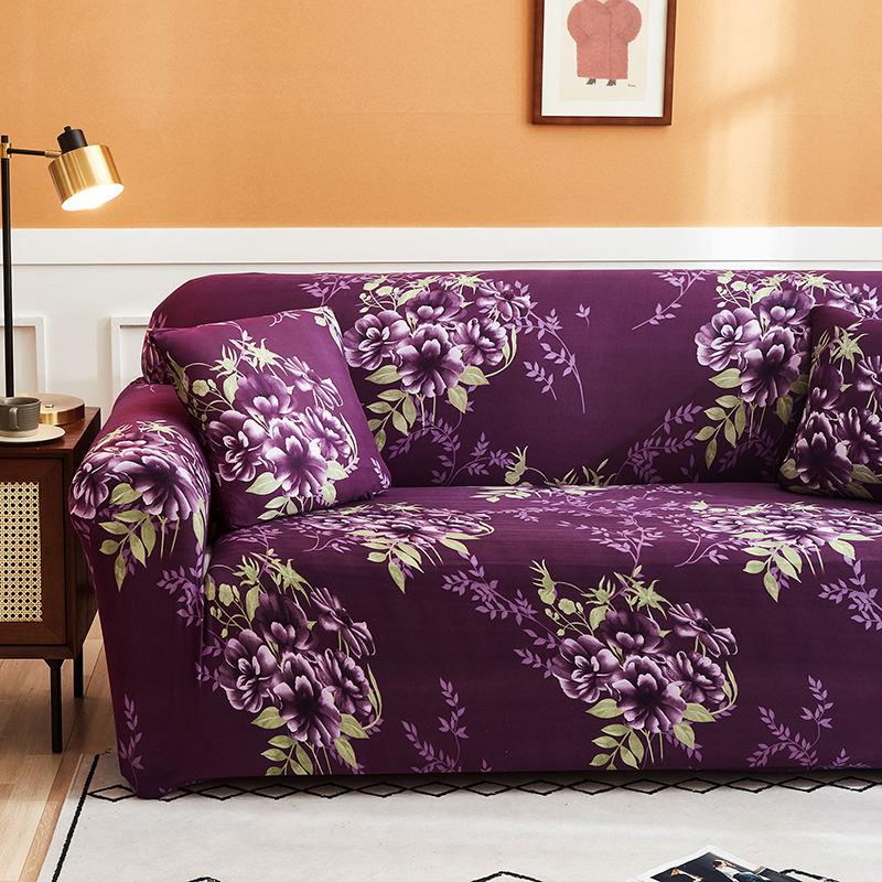Classical Floral Pattern Purple Color High Elastic Sofa Cover L Shape+Corner Sets of 2 Seat