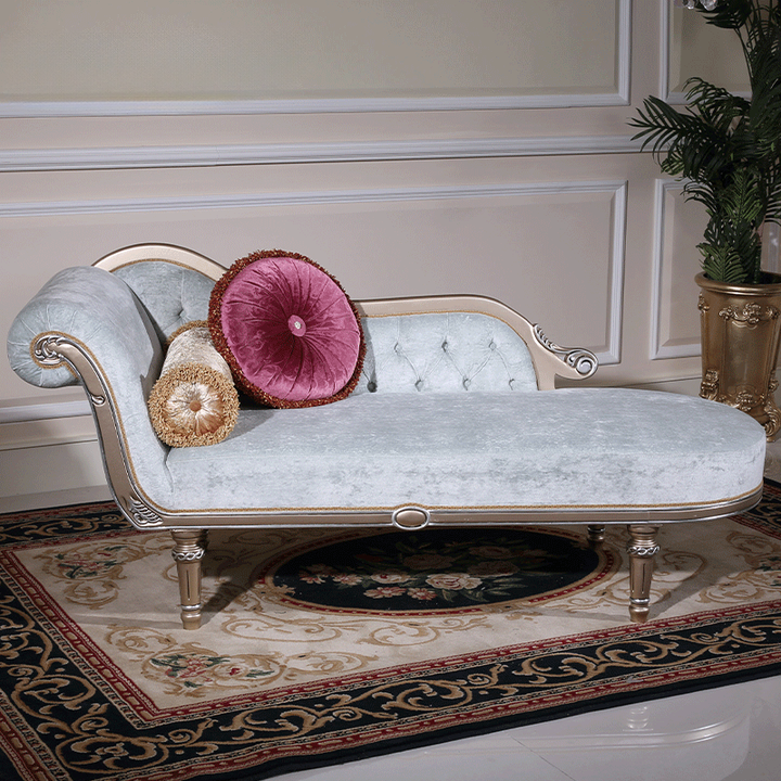 Mobili classici soggiorno Chaise Lounge tessuto di velluto legno Royal per interni soggiorno Chaise Lounge Chair