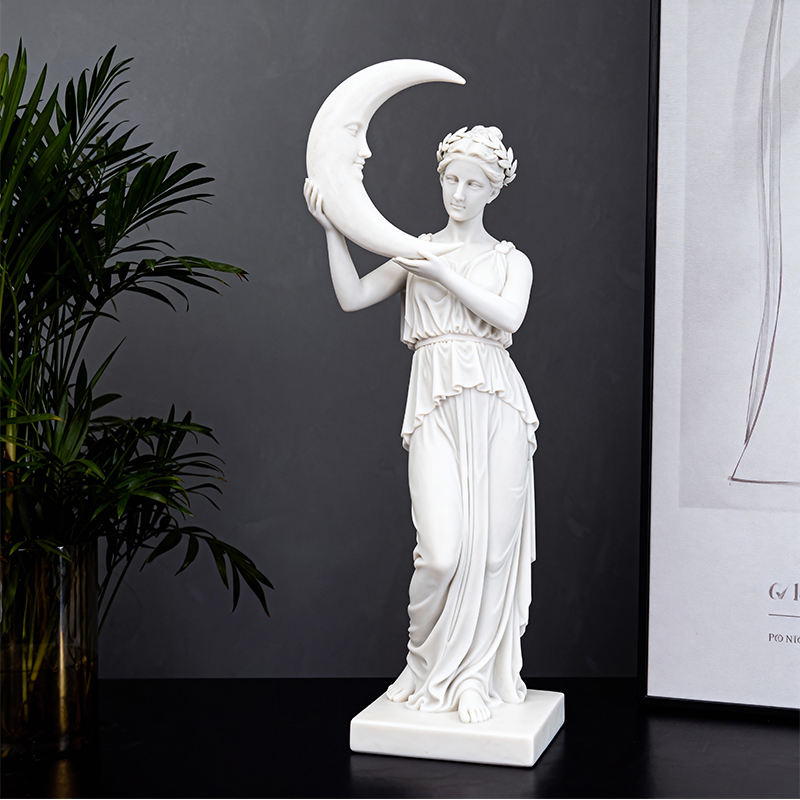 Sculture in Resina di Dea Greca Classica (Piatto/Luna Crescente/Spiga di Grano) Decorazioni Vintage per Casa e Ufficio Ornamenti Artistici per Tavolo del Soggiorno