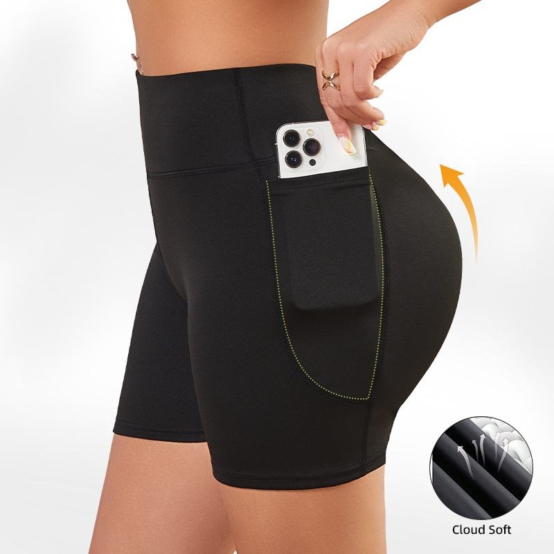 Pantaloncini da Ciclismo Classici a Vita Alta con Tasche, Shorts per Corsa, Ciclismo, Allenamento e Yoga per Donne