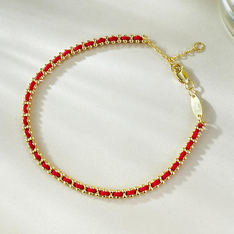 Braccialetti Classici Portafortuna Fatti a Mano con Perline per Donne, Bracciale con Corda Rossa e Catena Placcata Oro