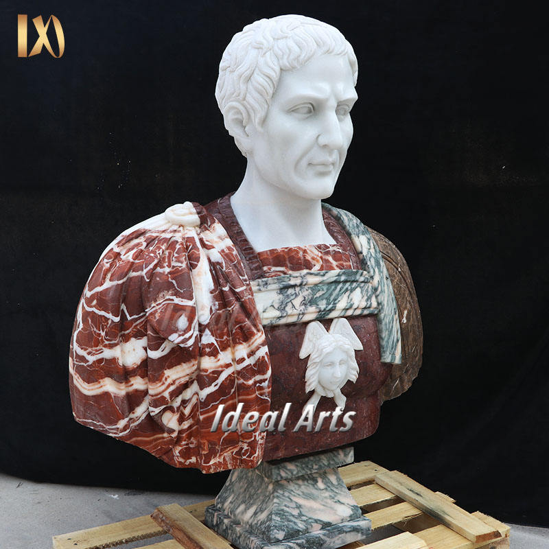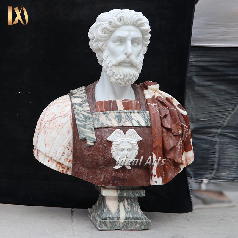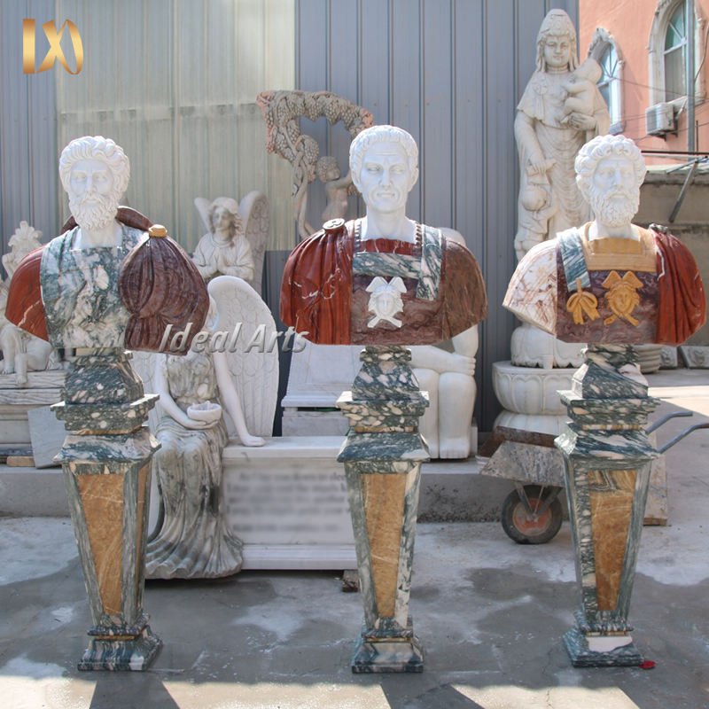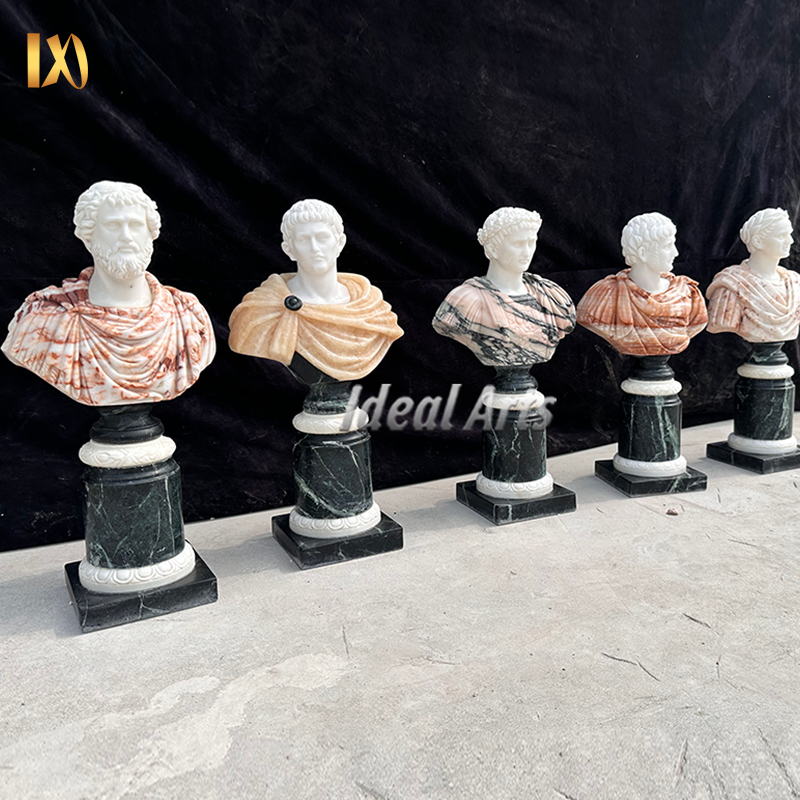 Busto Maschile Classico in Marmo con Piedistallo, Statua in Pietra Intagliata a Mano in Stile Greco per Decorazione d'Interni