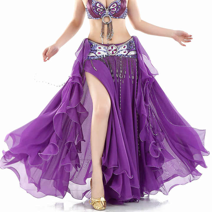 Gonna Lunga Classica e Sensuale in Chiffon con Spacco e Bordo Ondulato a Volant per Allenamento ed Esibizione di Danza del Ventre Orientale