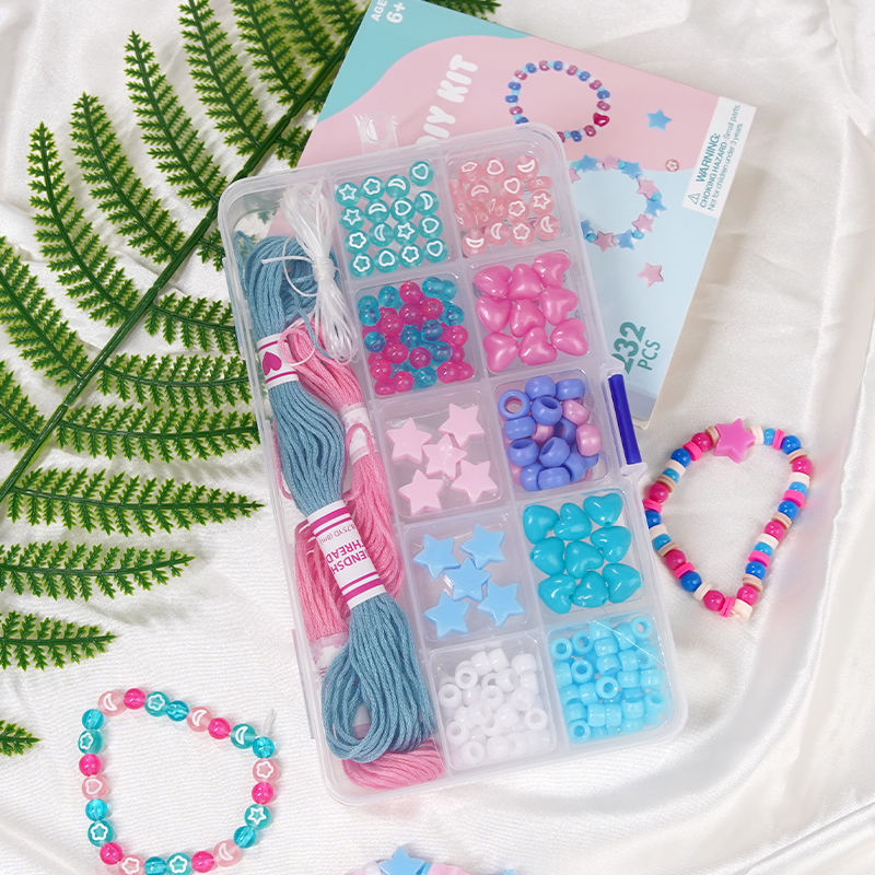 Perline di argilla Rose-team WingArt fai da te, fai da te, Kit per braccialetti con stelle d'amore rosa