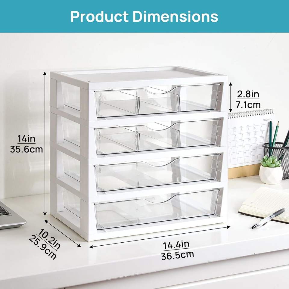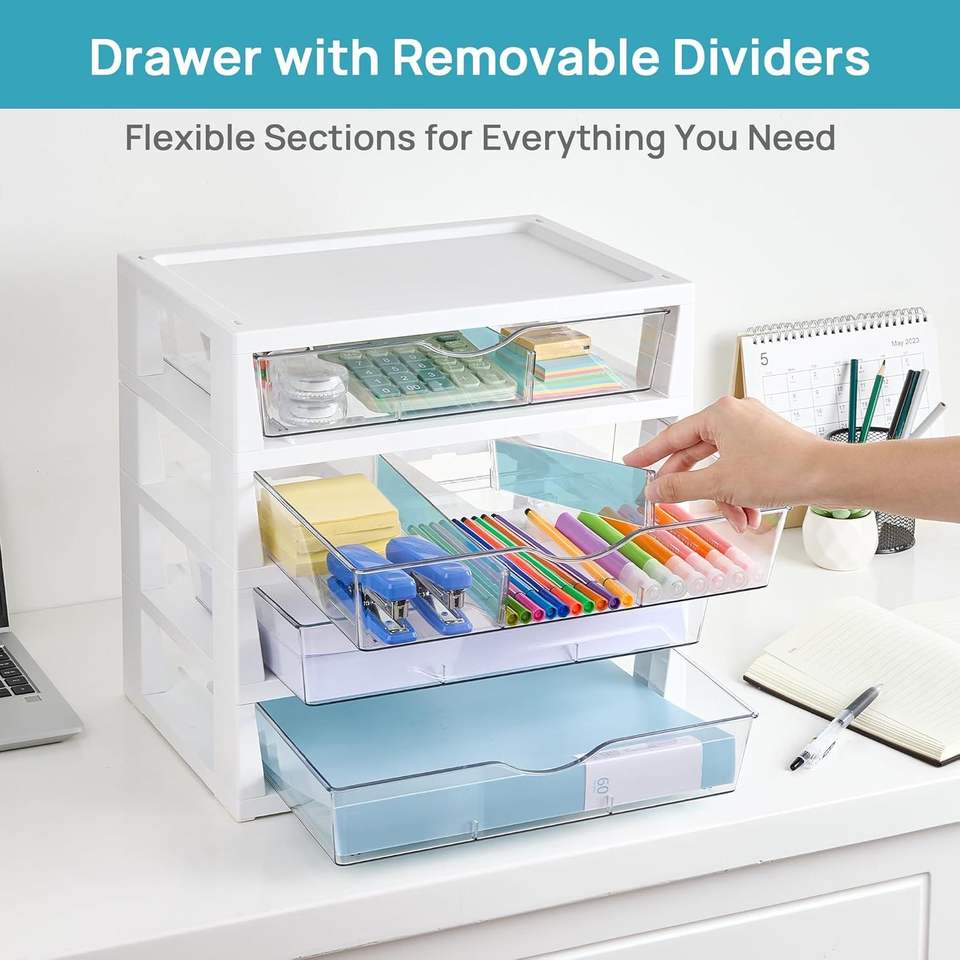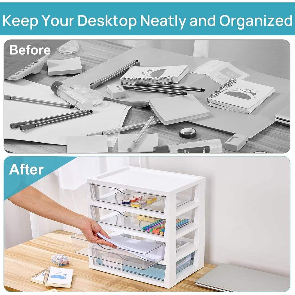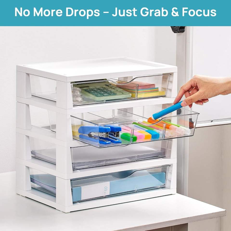 Organizzatore da Scrivania Trasparente a 4 Livelli con Cassetti, Facile da Montare e Salvaspazio, Organizzatore per Ufficio