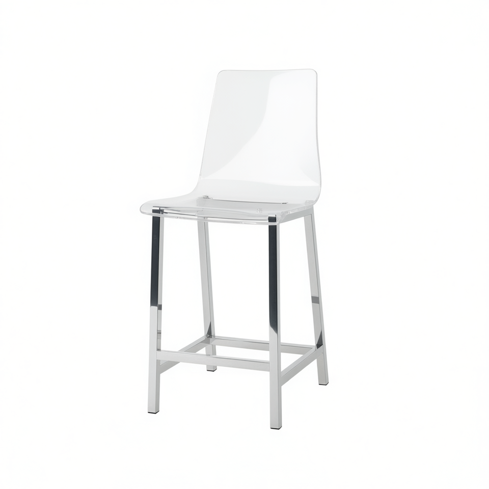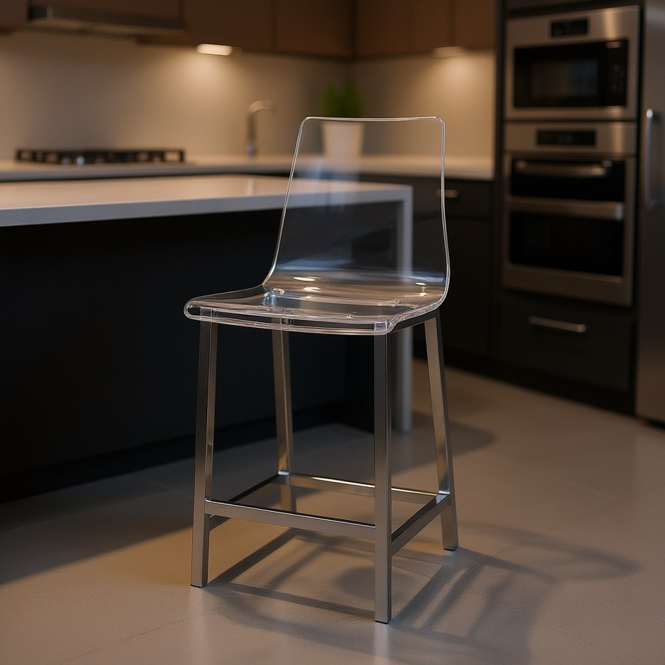 Sgabello da Bar in Acrilico Trasparente con Base Cromata, Altezza Bancone, Design Moderno per Uso Bar