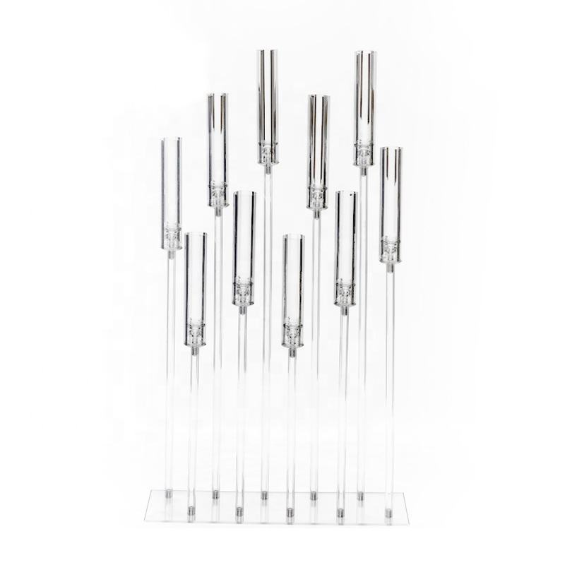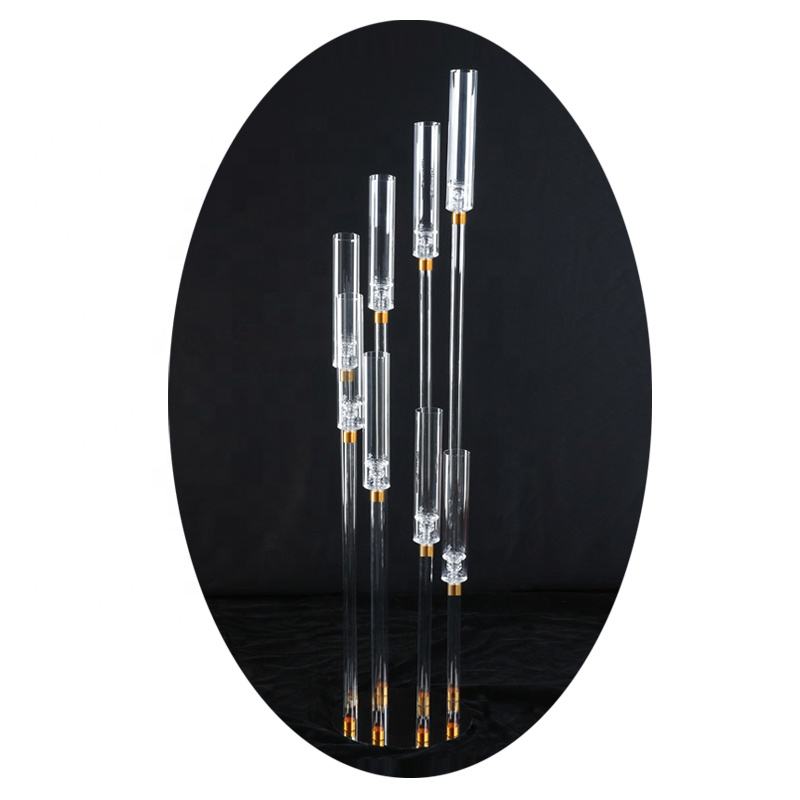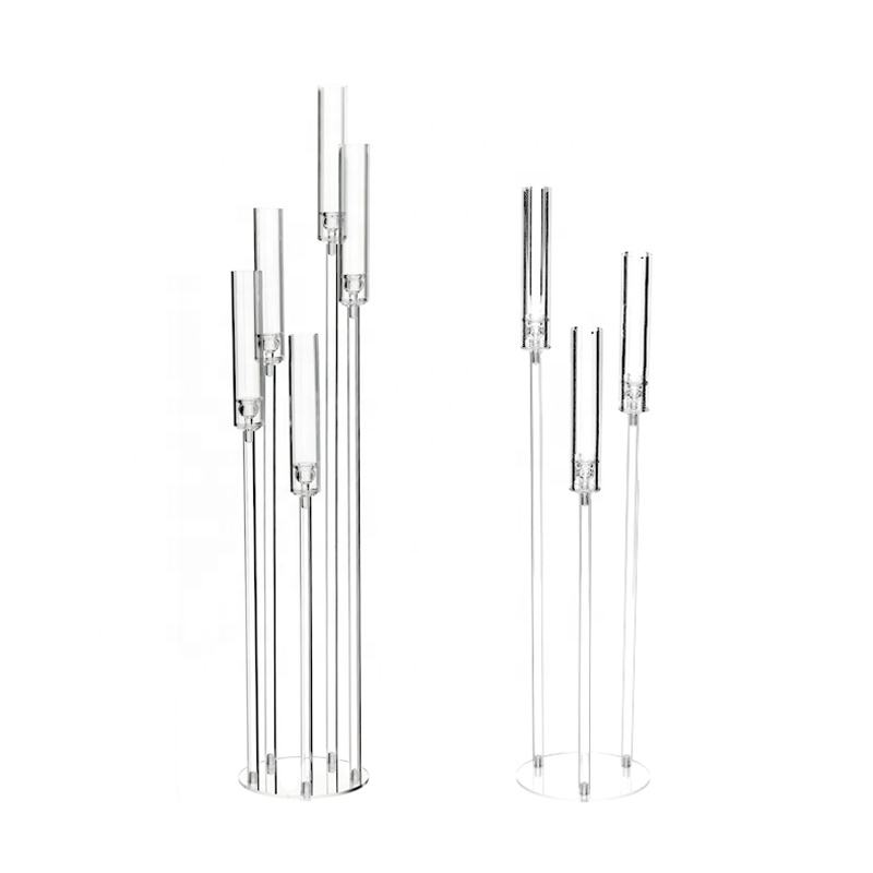 Portacandele LED in Acrilico Trasparente, Candelabro Centrotavola a 3 Bracci, Portacandele a Colonna con Paralume in Acrilico