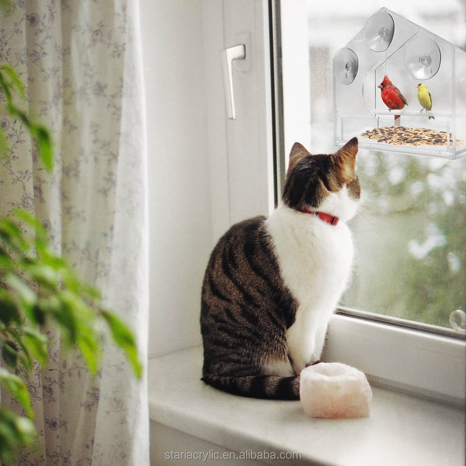 Acrilico trasparente Grande Finestra Mangiatoia per Uccelli con Scorrevole Vassoio di Alimentazione